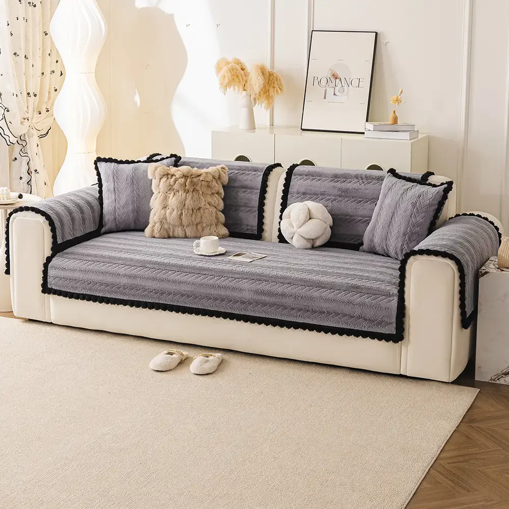 Lazy Chic Plush Winter Sofa Protector Skin-Friendly Couch Cover