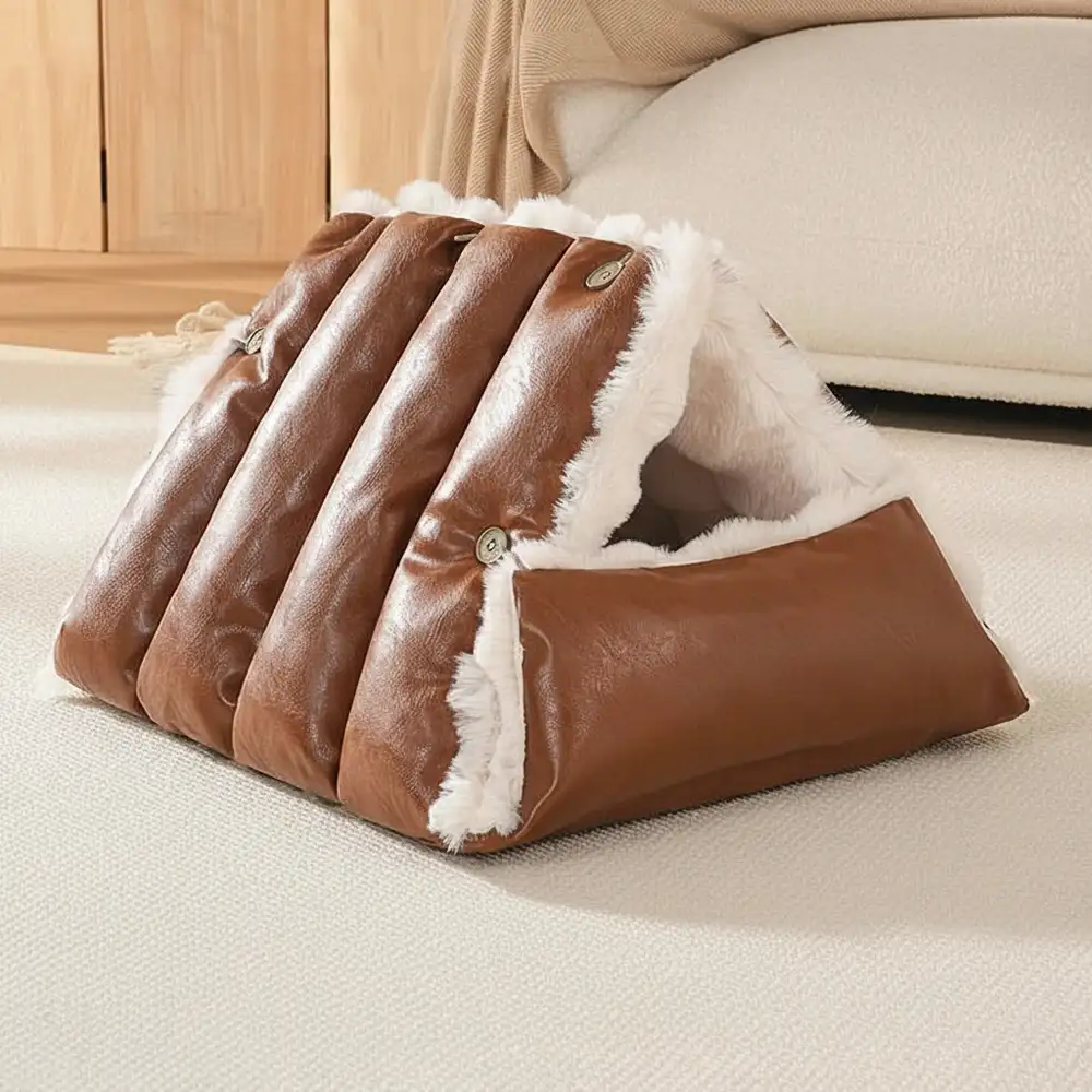 Cozy Cabin Portable Semi-Enclosed Dog Bed with Roof Warming And Durable