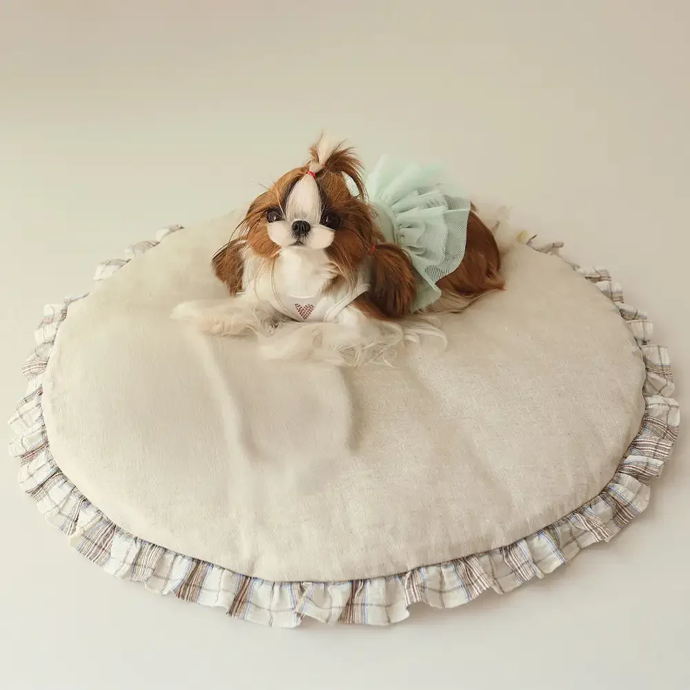 Country Chic Plaid Non-Slip Round Pet Mat - Large Space