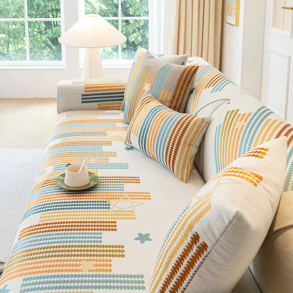 Colorful Striped Quilted Sofa Chic Protector Comfort Couch Cover