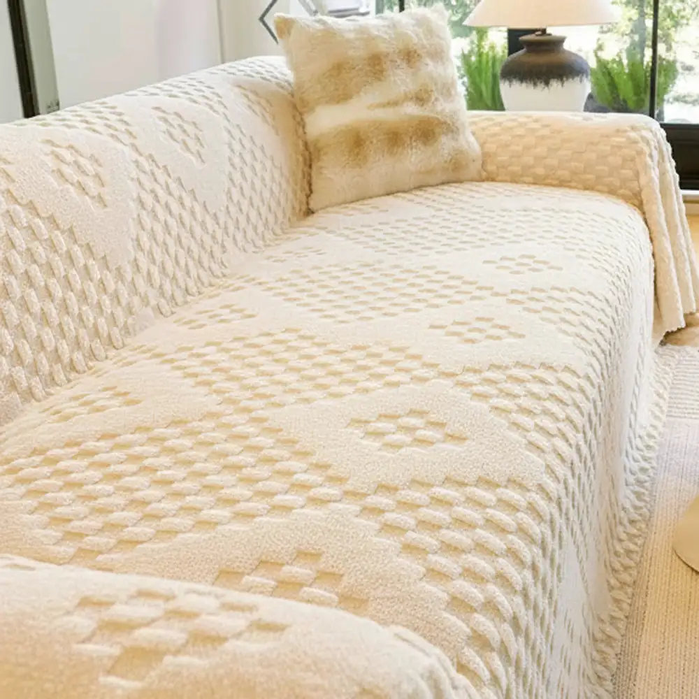 Fluffy Jacquard Velvet Scratch-Resistant Thickened Sofa Blanket Couch Cover