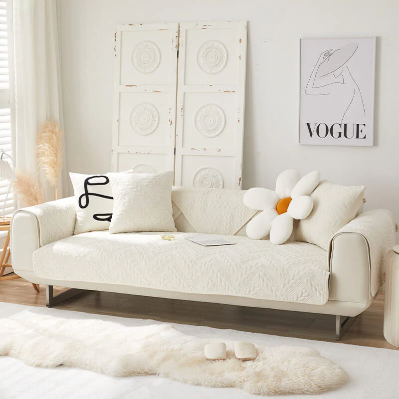 Weave Pattern Cotton Quilted Sectional Couch Cover