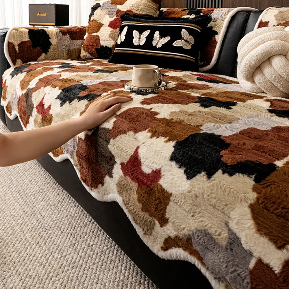 Stylish Color-Blocked Faux Rabbit Fur Soft Non-Slip Irregularly Shaped Couch Cover