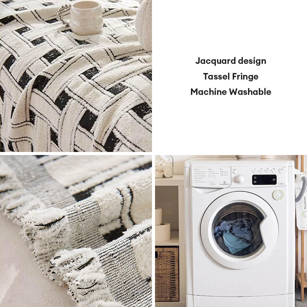 Stylish Checkered Fringed Tassel Chenille Sofa Protector Throw Couch Cover