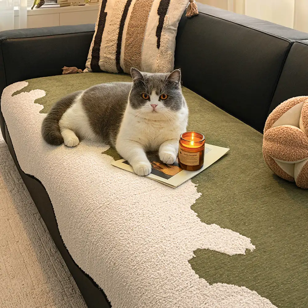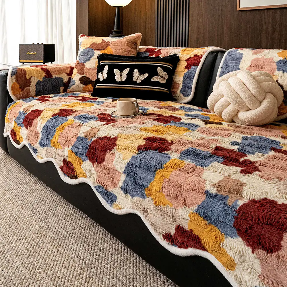 Stylish Irregular Contrast Chenille Scratch-Resistant Non-Slip Couch Cover