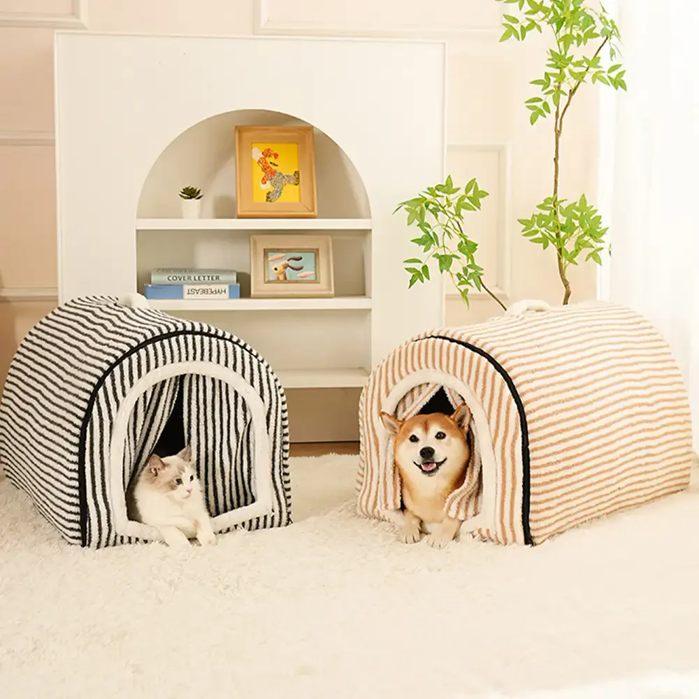 Striped Cave-Style Warm Deep Sleeping Snug Cat Cave Dog House