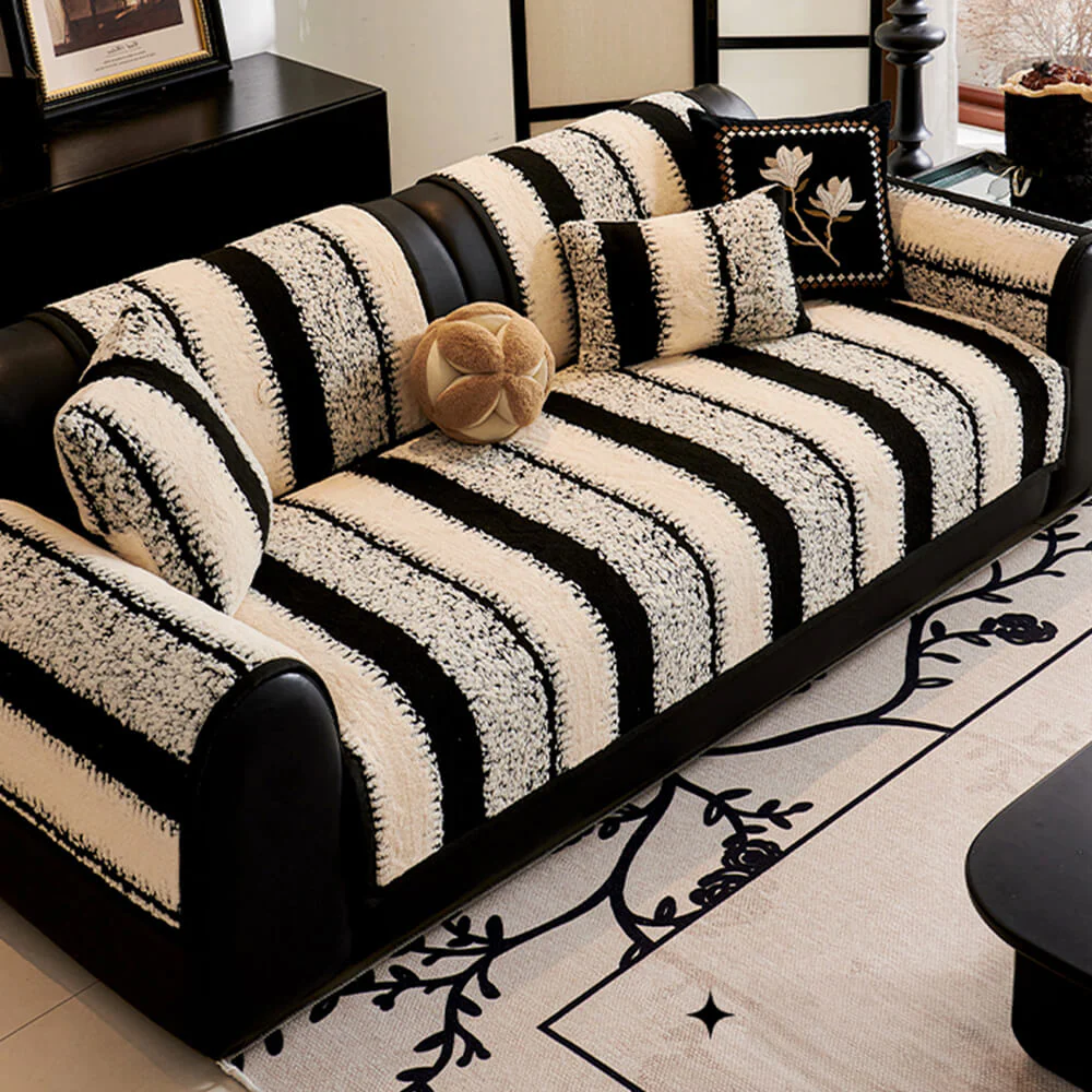 Striped Faux Rabbit Fur Sofa Protector Durable And Stain-Resistant Couch Cover
