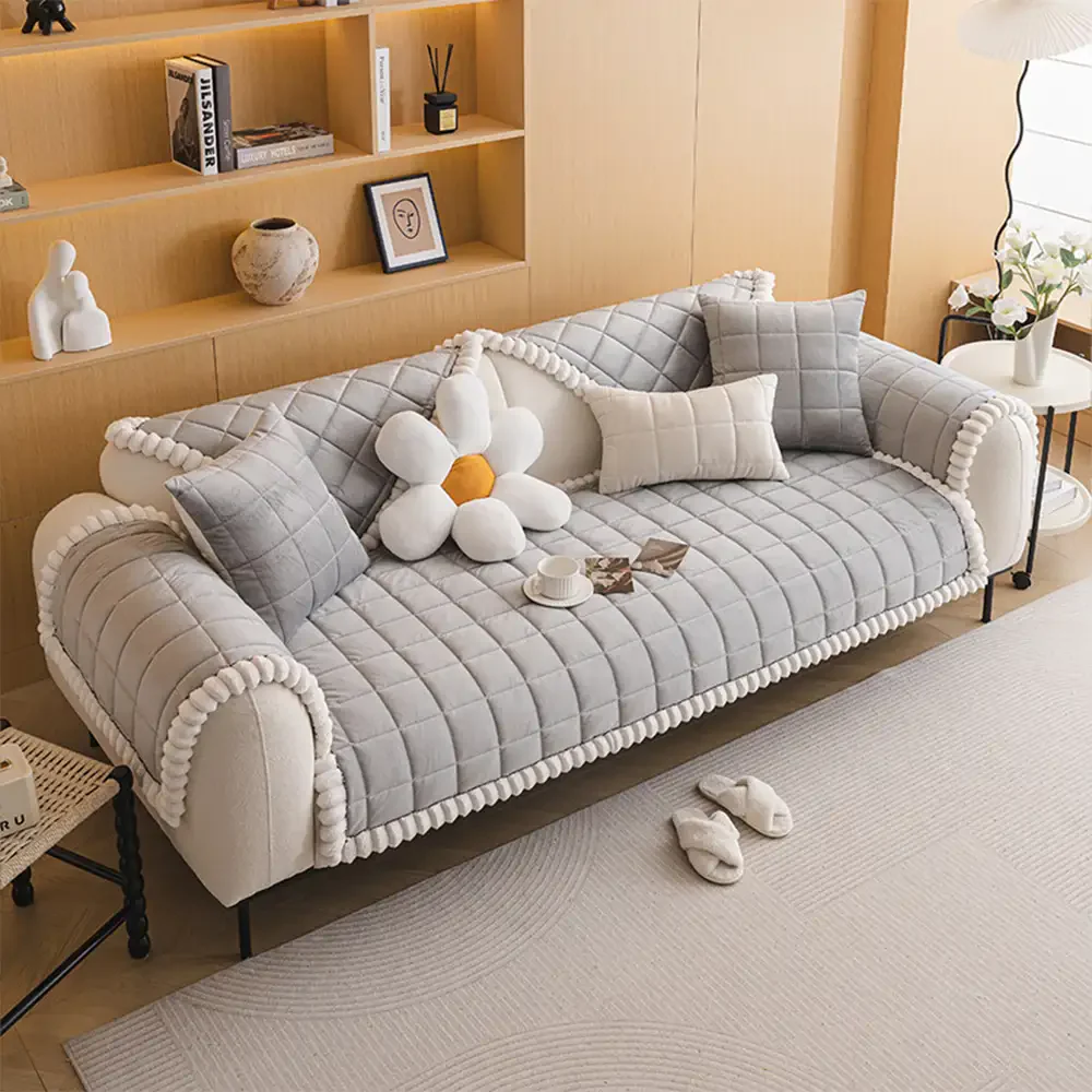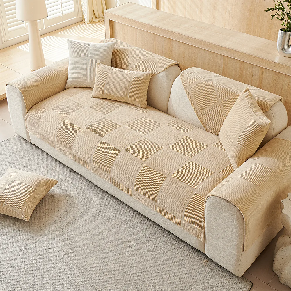 Square Short Plush Simple Sofa Protection Non-Slip Couch Cover