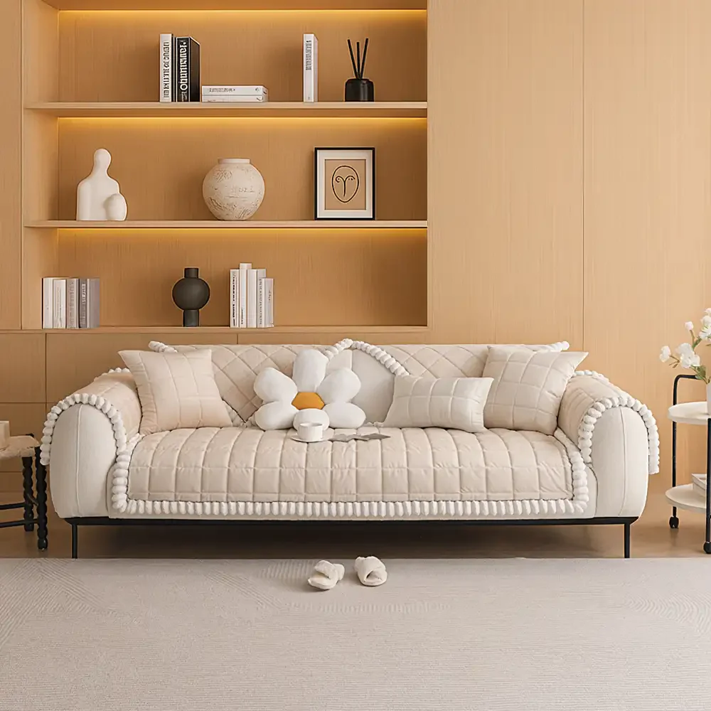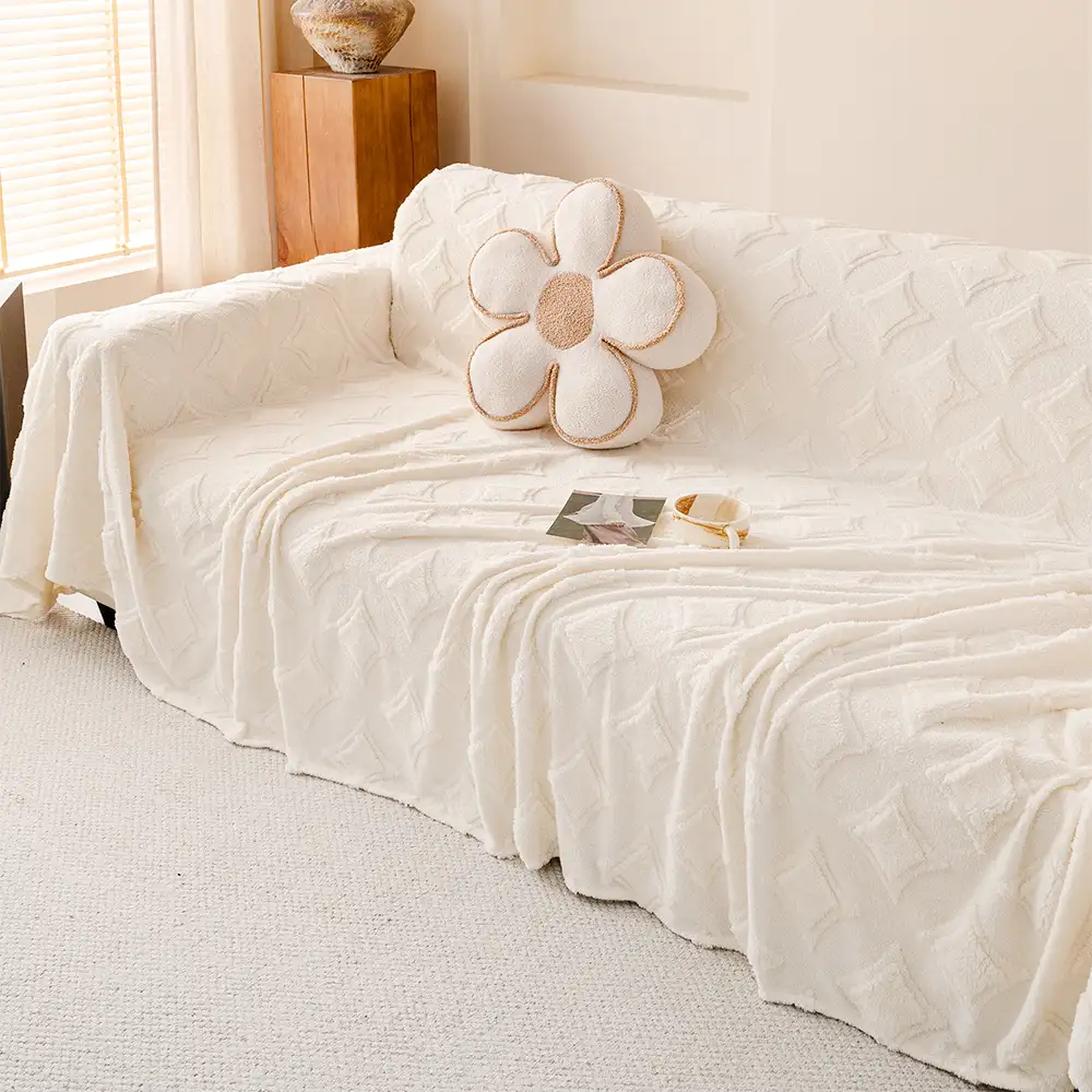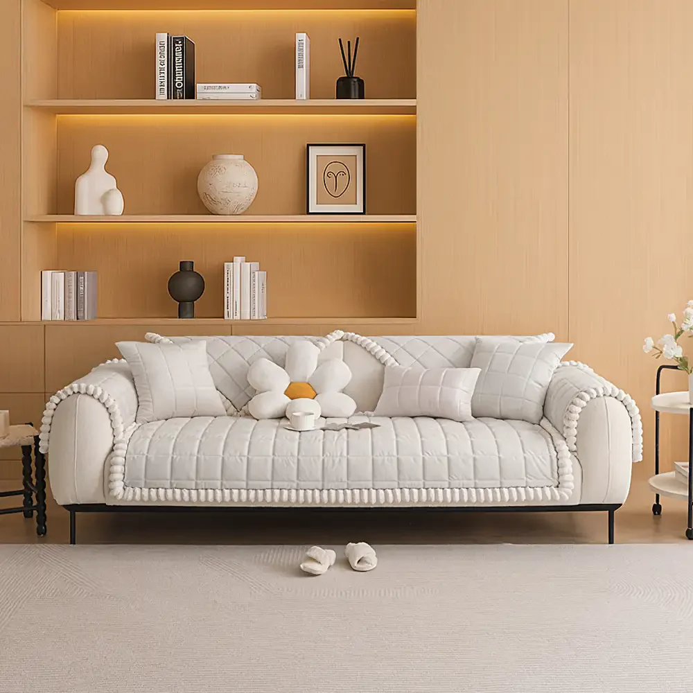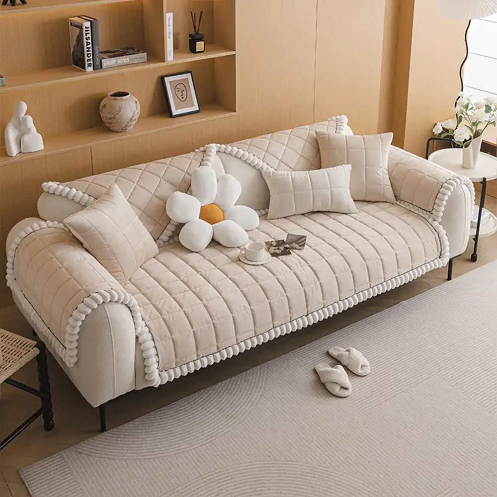 Plush Cream Comfort Furniture Protective Mat Couch Cover