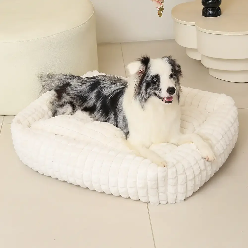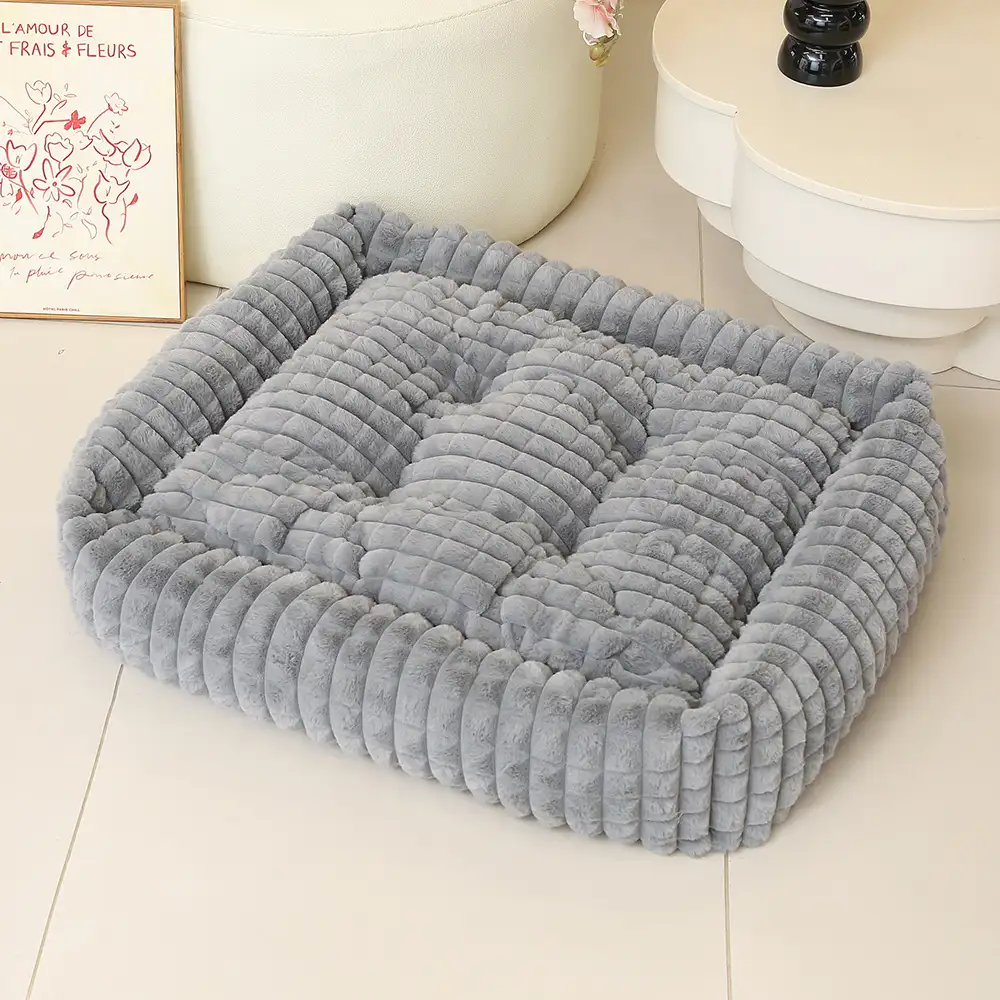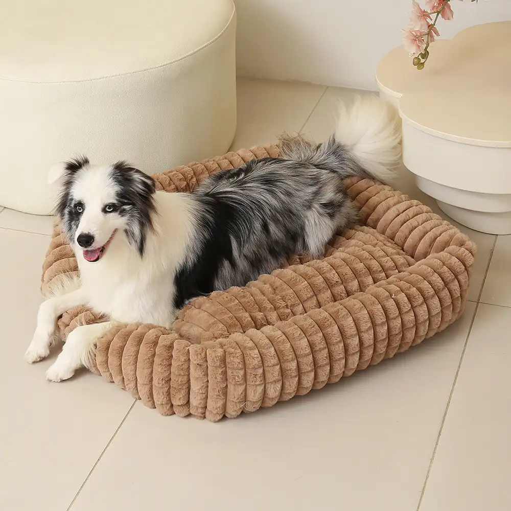 Square Striped Short Plush Fluffy Dog Bed for Small to Large Dogs Deep Rest