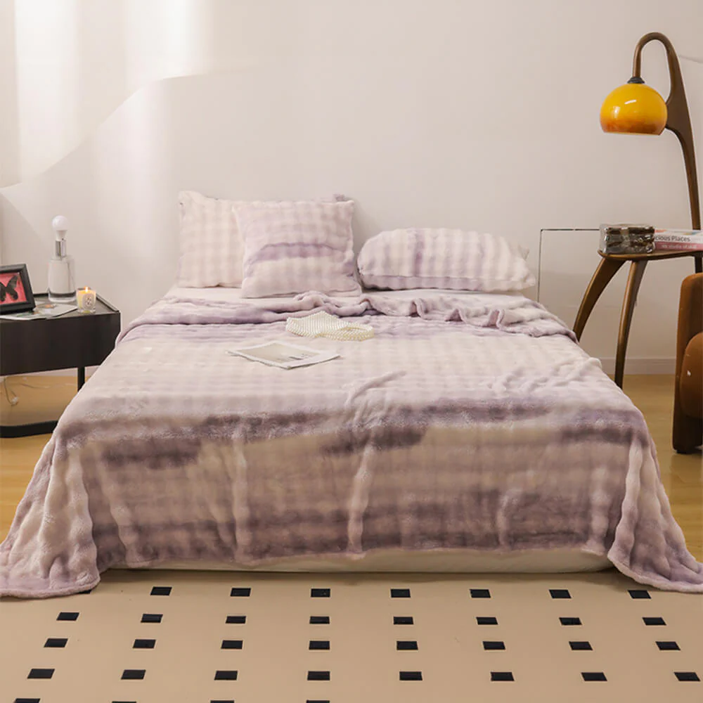 Luxury Gradient Faux Rabbit Fur Soft Blanket Flat Sheet
