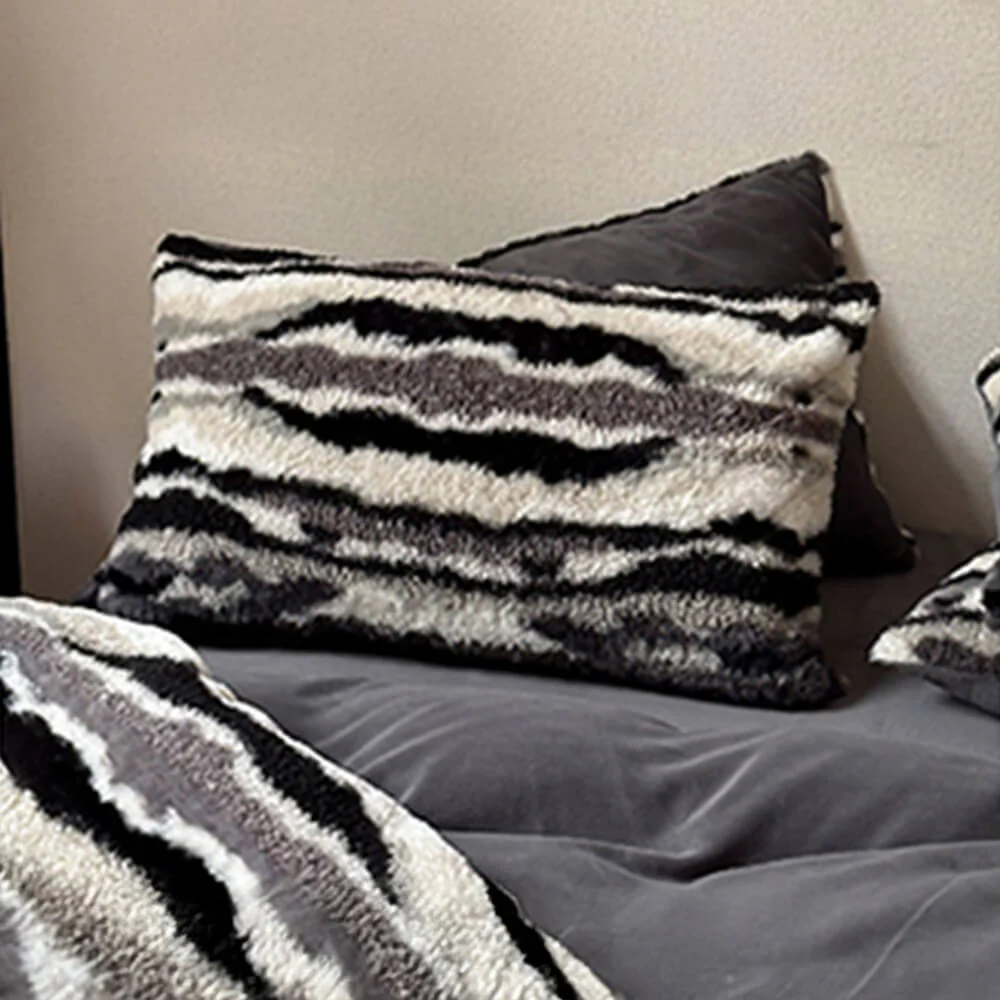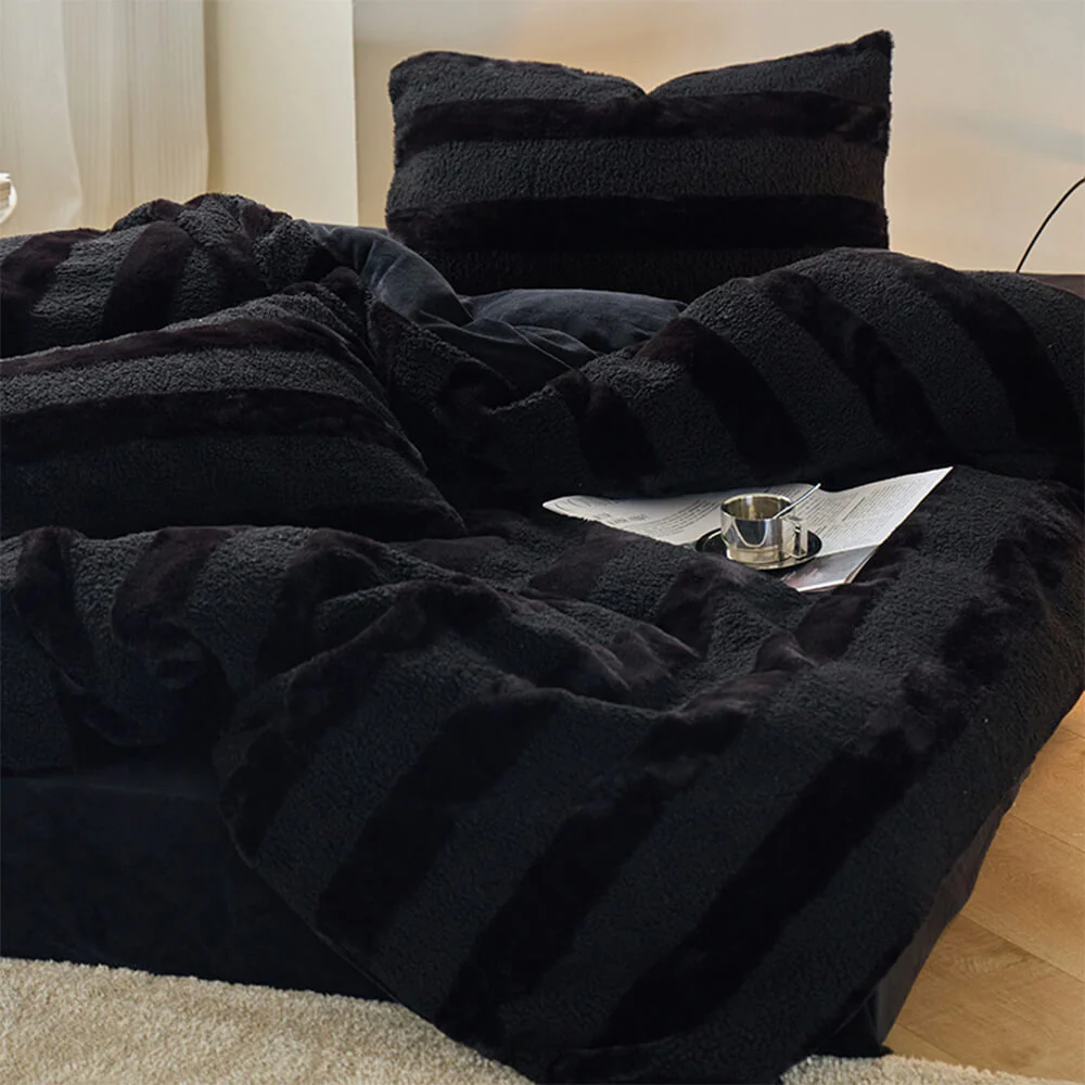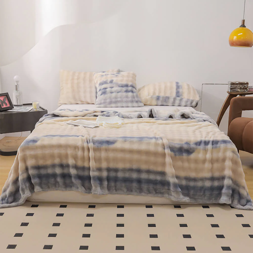 Irregular Ombre Striped Warm Thick Faux Rabbit Fur Anti-Static Bed Sheet Set