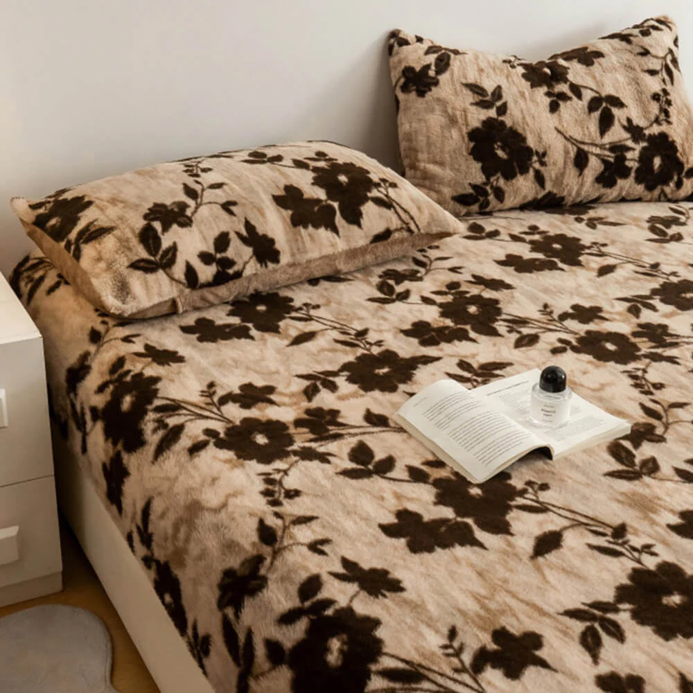 Elegant Botanical Pattern Milk Velvet Bed Sheet Set