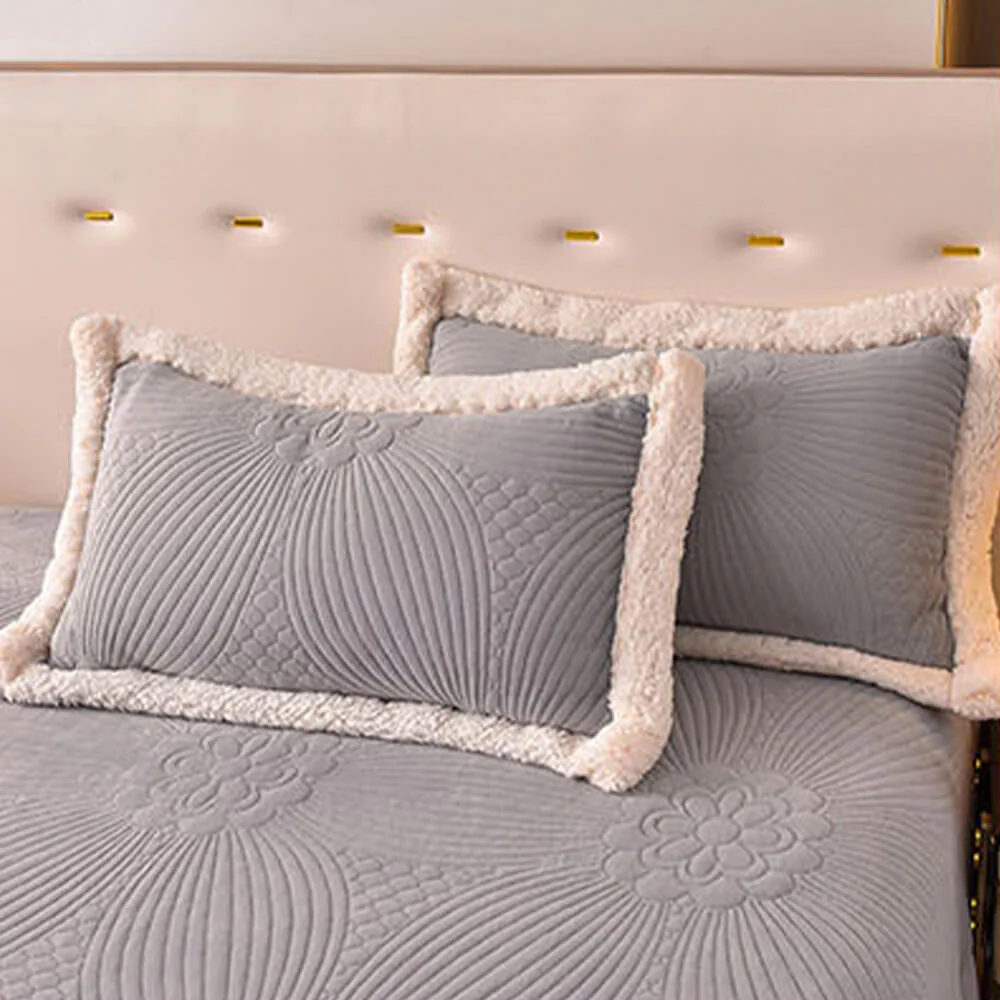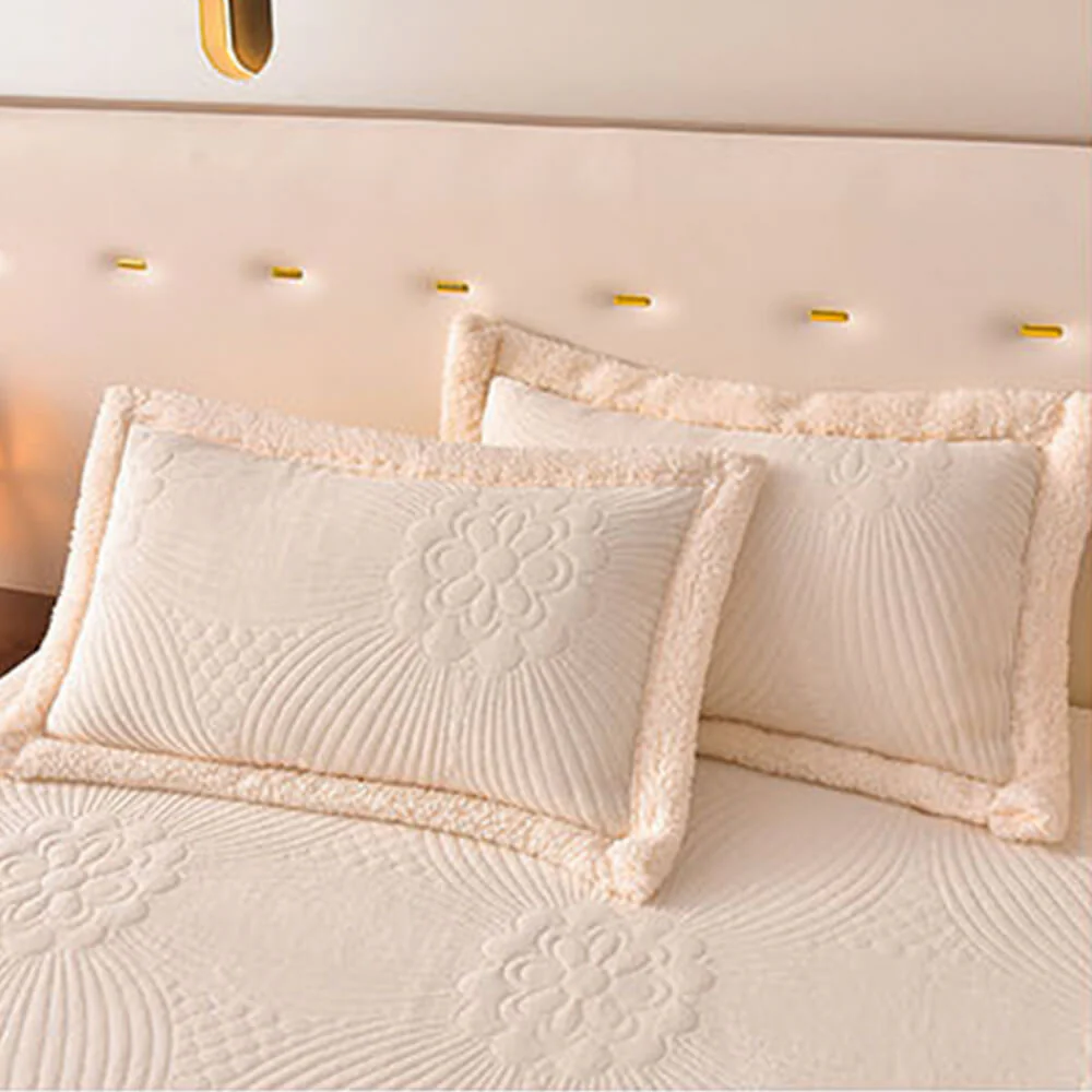 Creamy Milk Velvet Quilted Bed Skirt Set