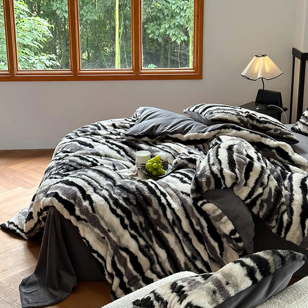 Dual-Sided Luxury Zebra Print Plush Bed Sheet Set