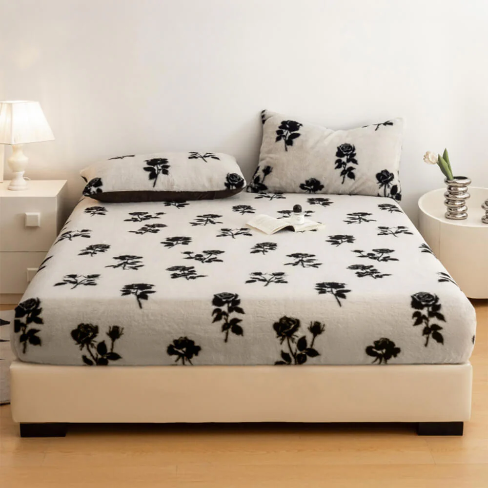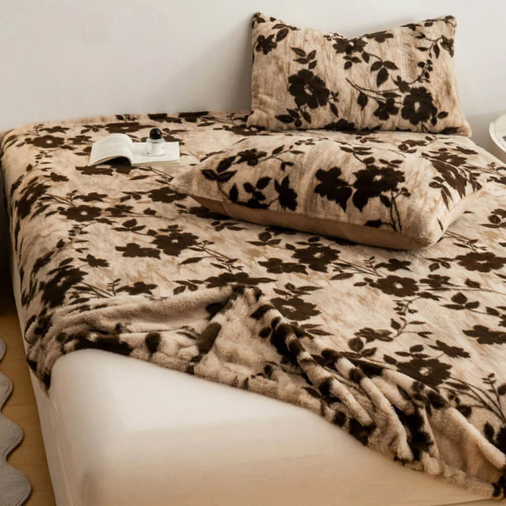 Deluxe Floral Double-Sided Velvet Dual Warmth Bed Sheet Set