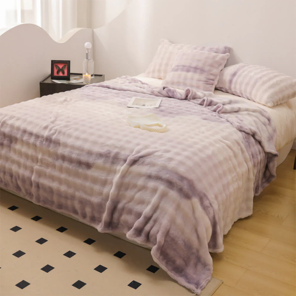 Colorful Gradient Textured Bubble Faux Rabbit Fur Soft Bed Sheet Set