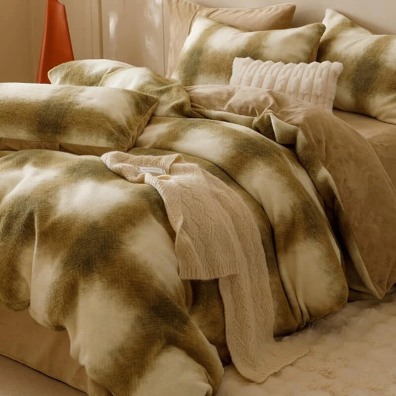 Gradient Fashion Long Plush Warm Bed Sheet Set