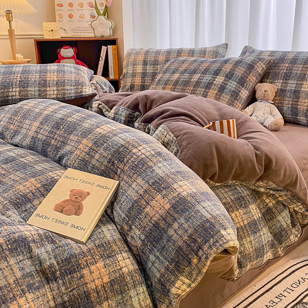 Milk Velvet Checkered Bedding Fitted Sheet Mattress Cover