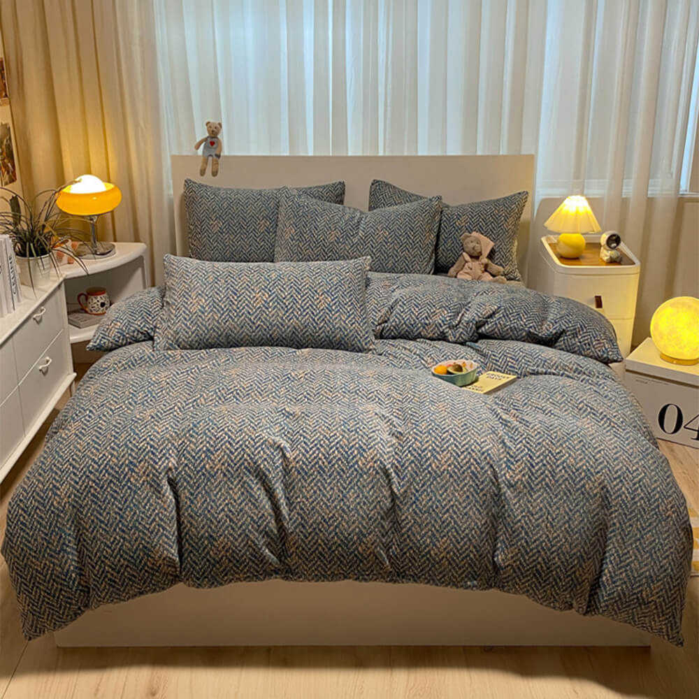 Diamond Jacquard Double-Layer Crinkled Cotton Bed Sheet Set