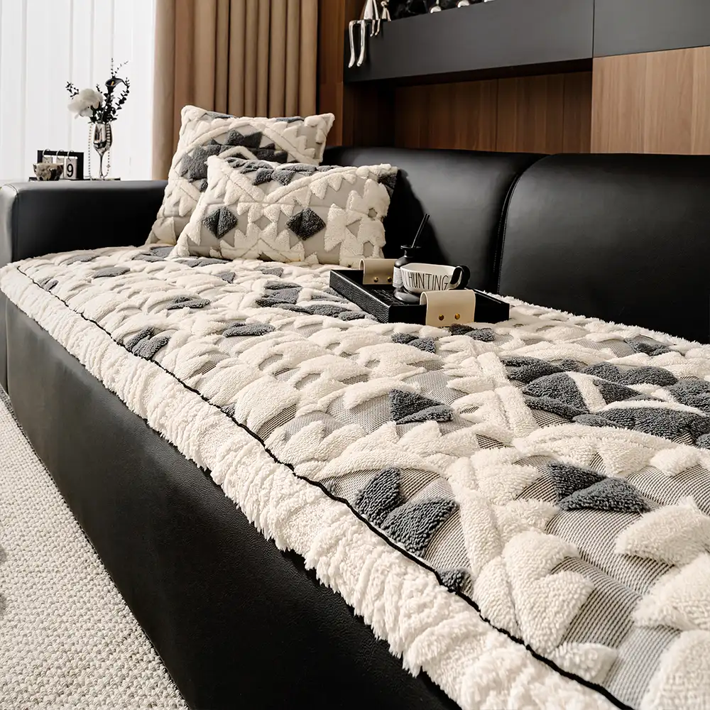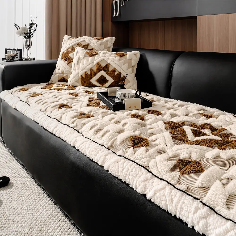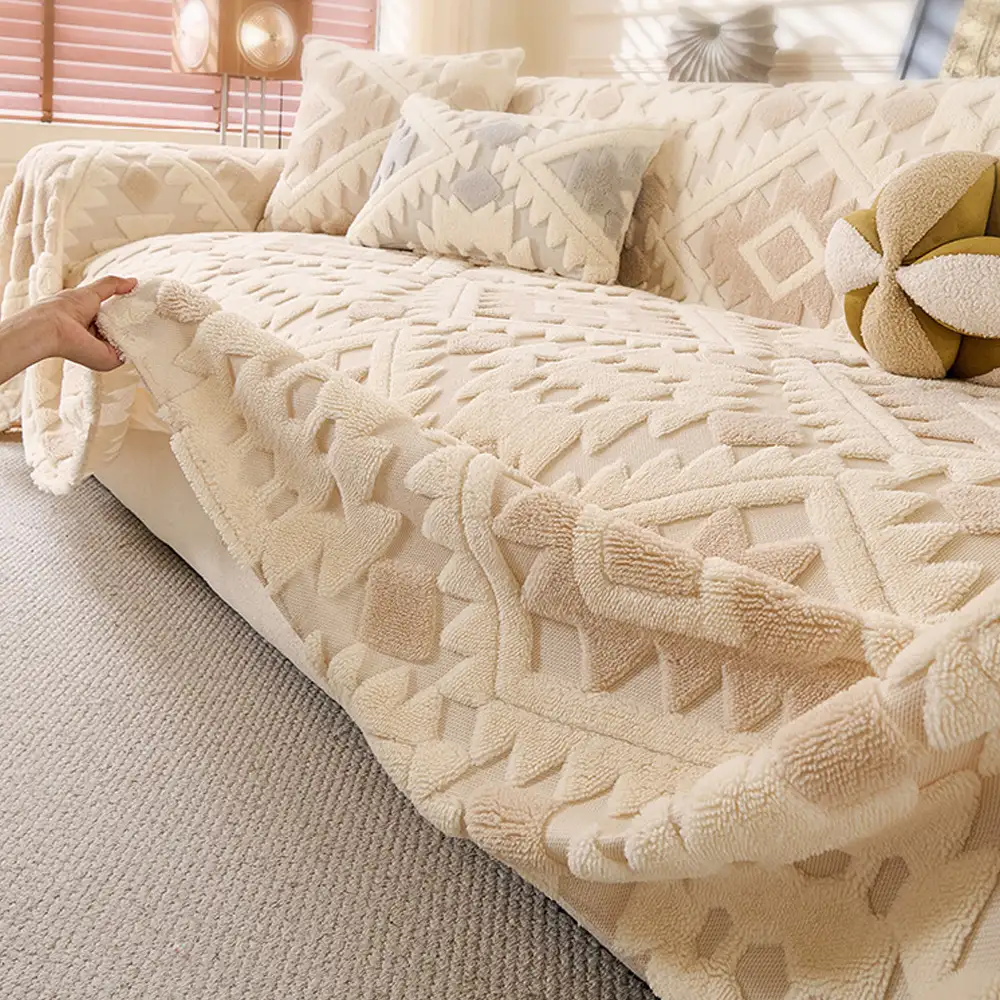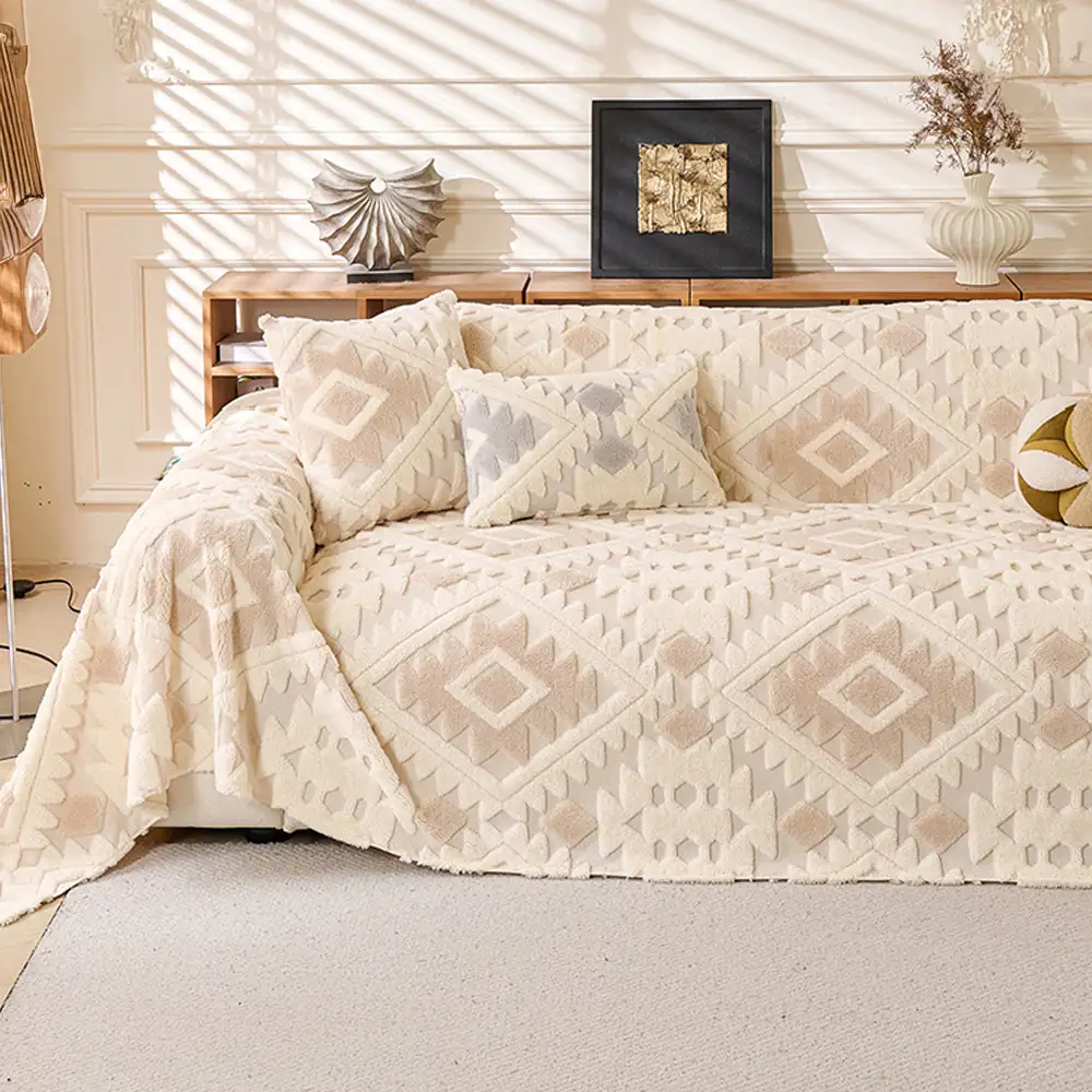 Plush Thickened Geometric Pattern Furniture Blanket Throw Couch Cover