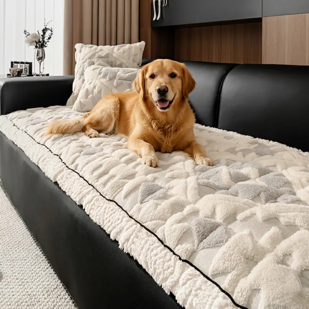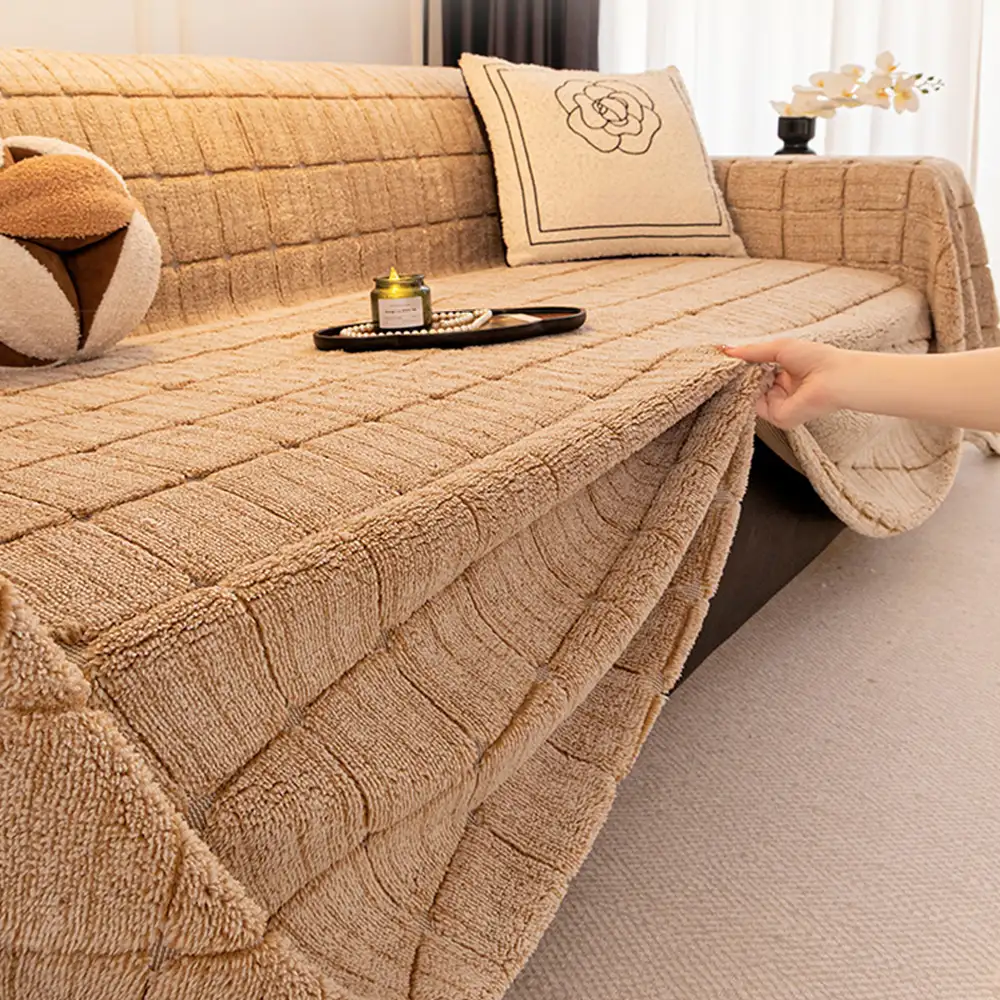 Premium Warm Wheat-Ear Plush Anti-Slip Anti-Scratch Couch Cover