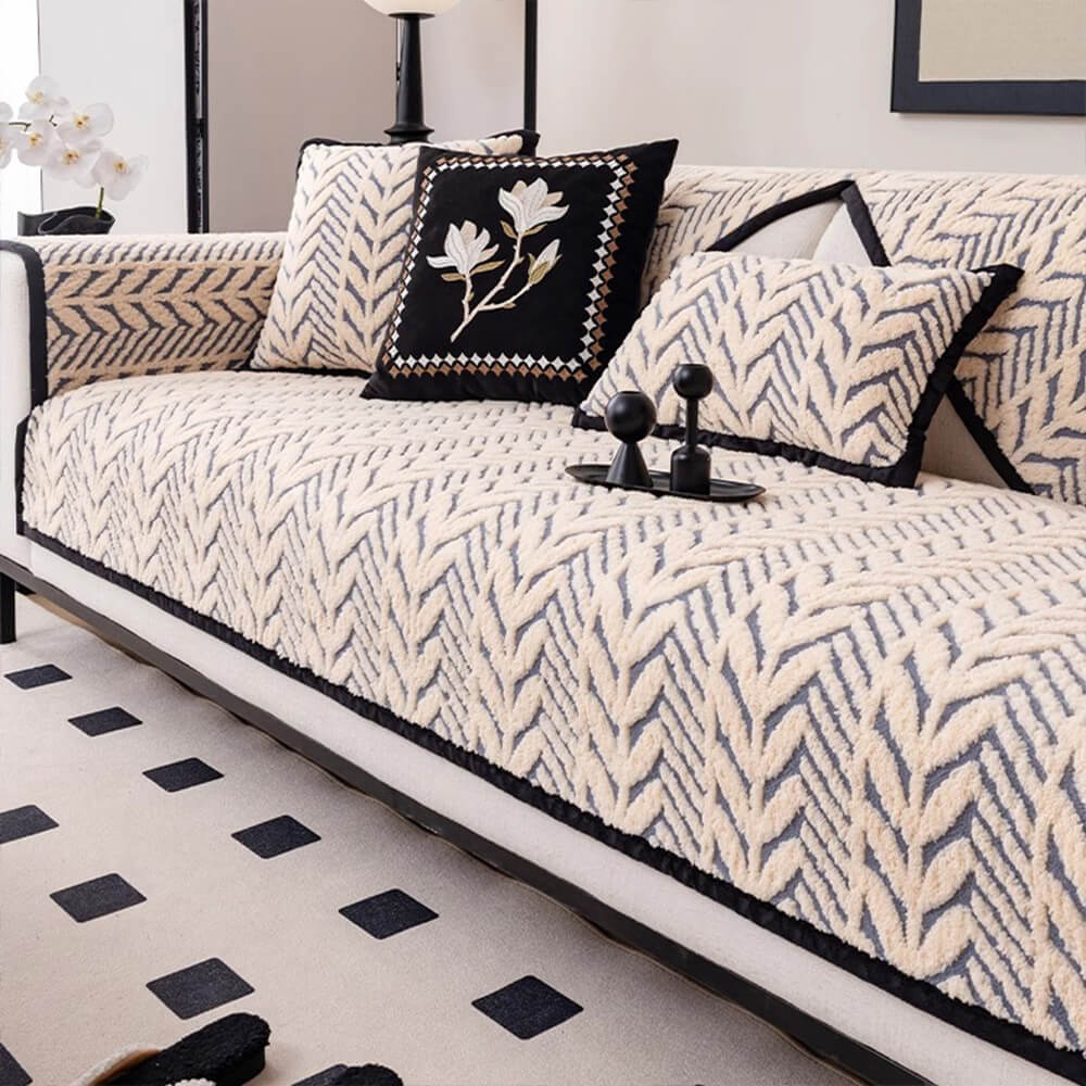 Premium Leaf Texture Chenille Non-Slip Anti-Scratch Couch Cover