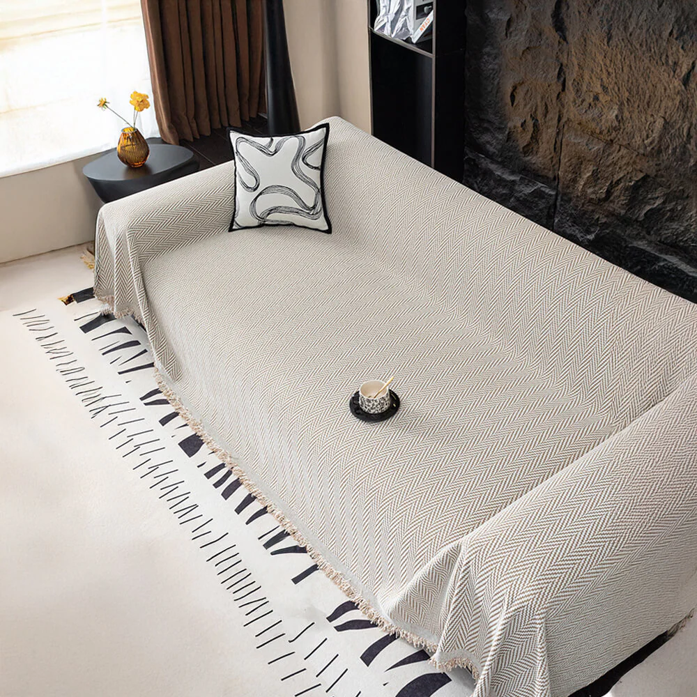 Premium Herringbone Chenille Fringe Full Coverage Couch Cover
