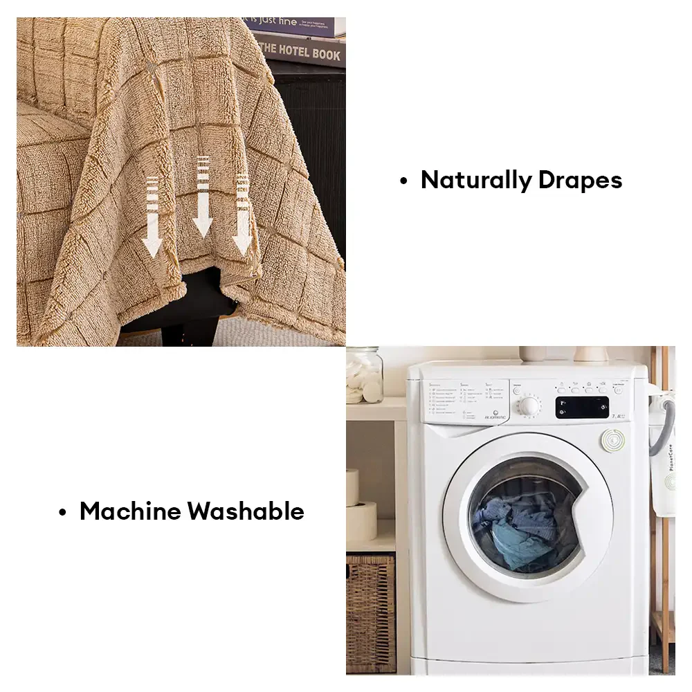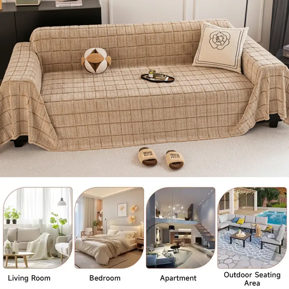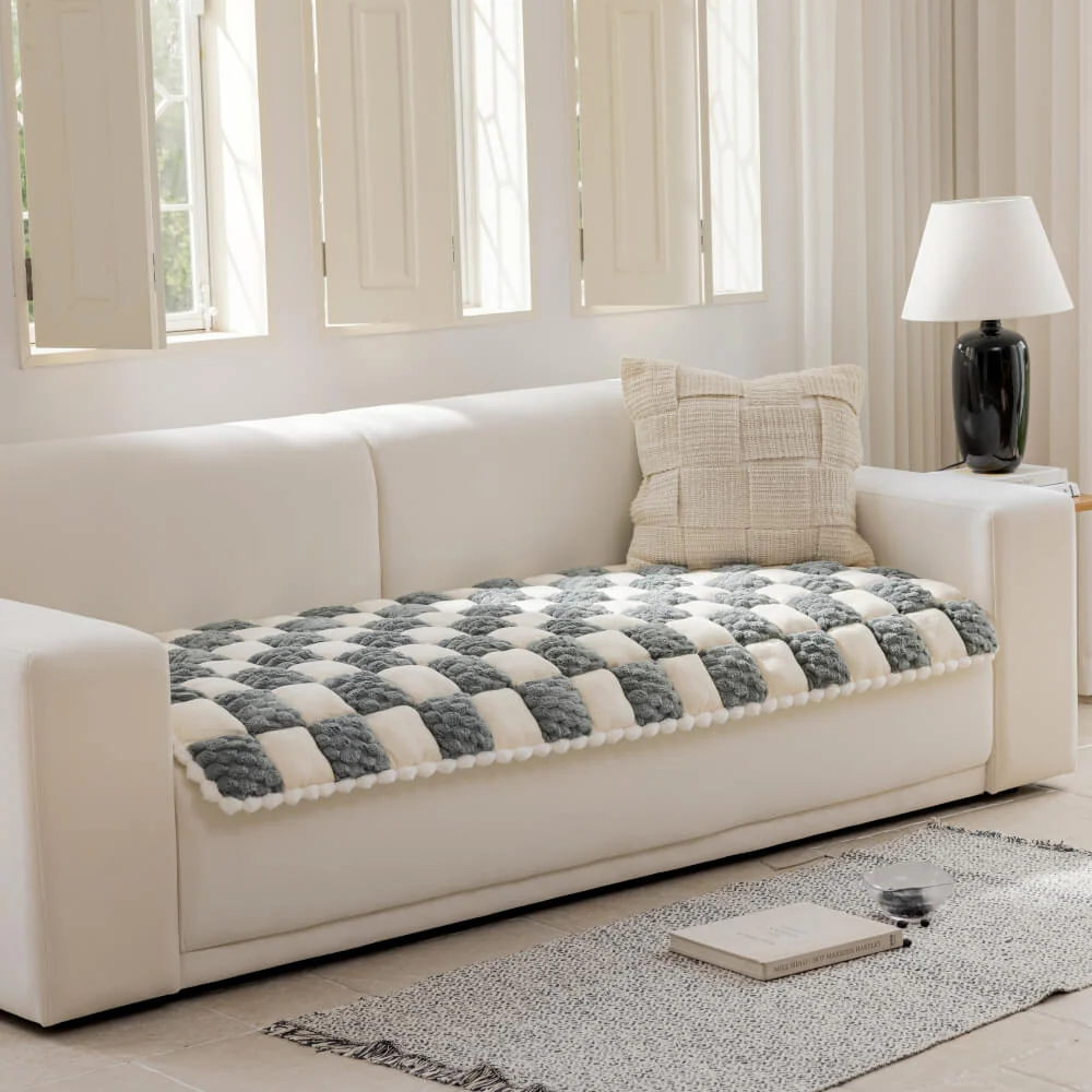 Soft Plush Plaid Square Furniture Protector Anti-Slip Couch Cover