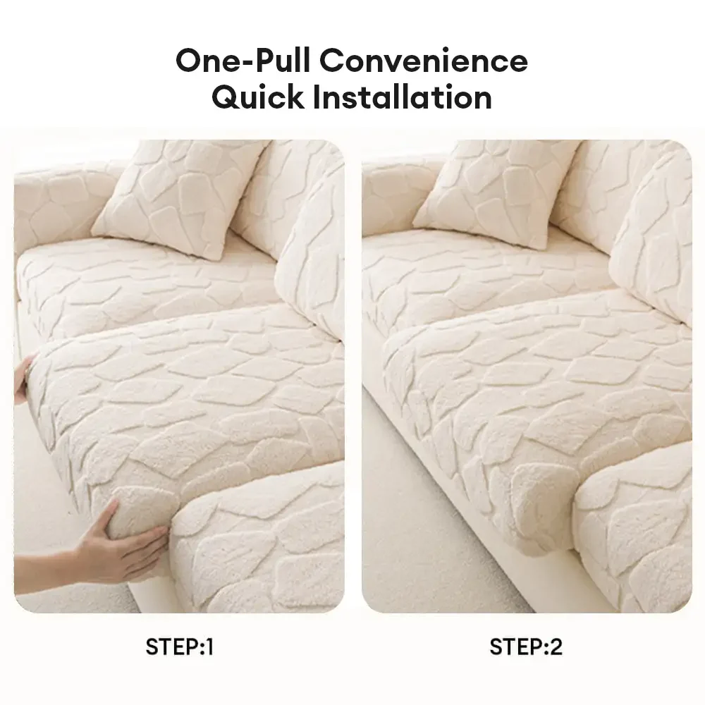 Soft Faux Rabbit Plush Thick Skin-Friendly Non-Slip Couch Cover