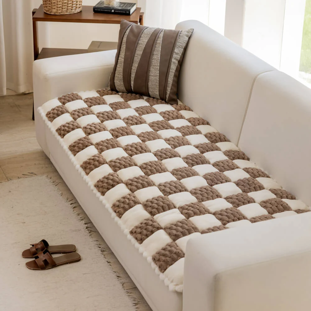 Plush Quilted Classic Checkered Comfortable Thickened Couch Cover