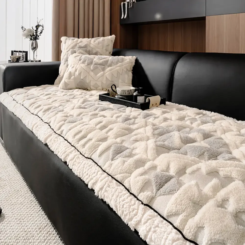 Soft Thickened Plush Couch Cover with Irregular Wave Edges