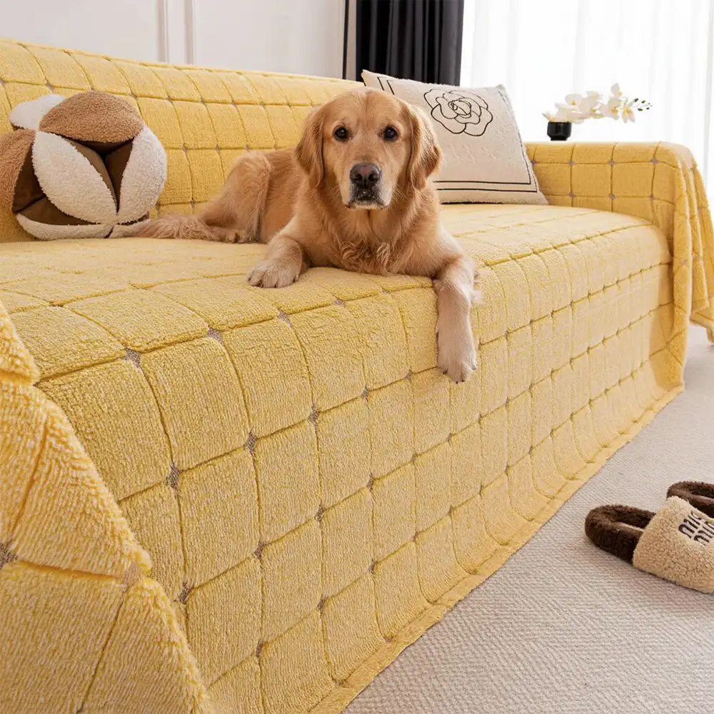 Square Corduroy Anti-Scratch Fabric Pet Friendly Non-Slip Couch Cover