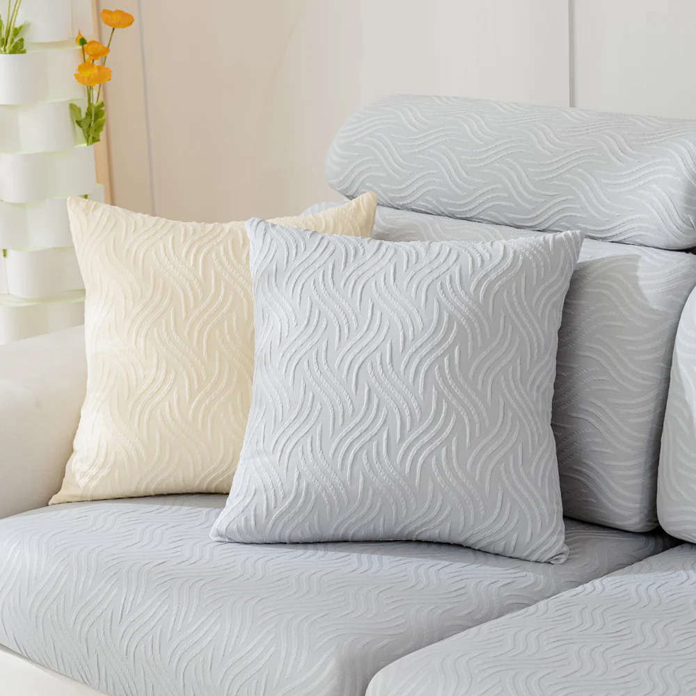 Non-Slip Herringbone Chenille Couch Cover with Wavy Edges