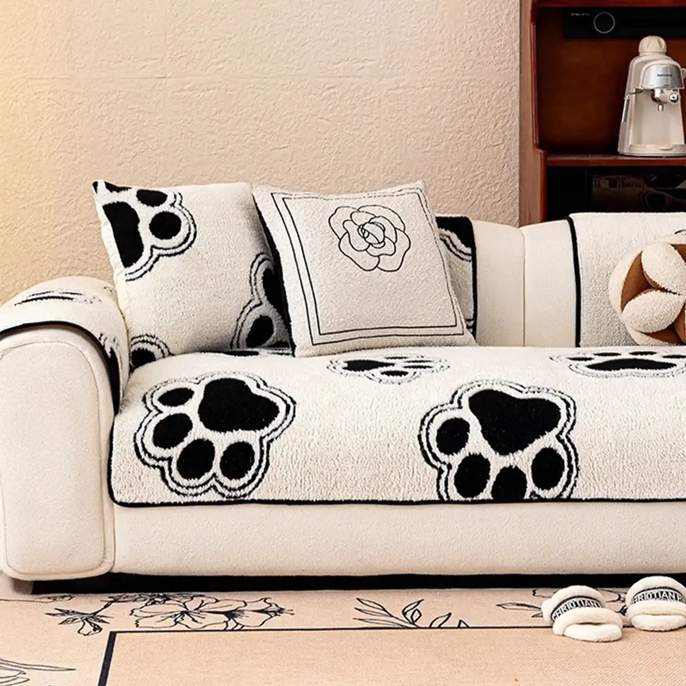 Paw Print Cute Plush Thick Sofa Decoration Non-slip Couch Cover