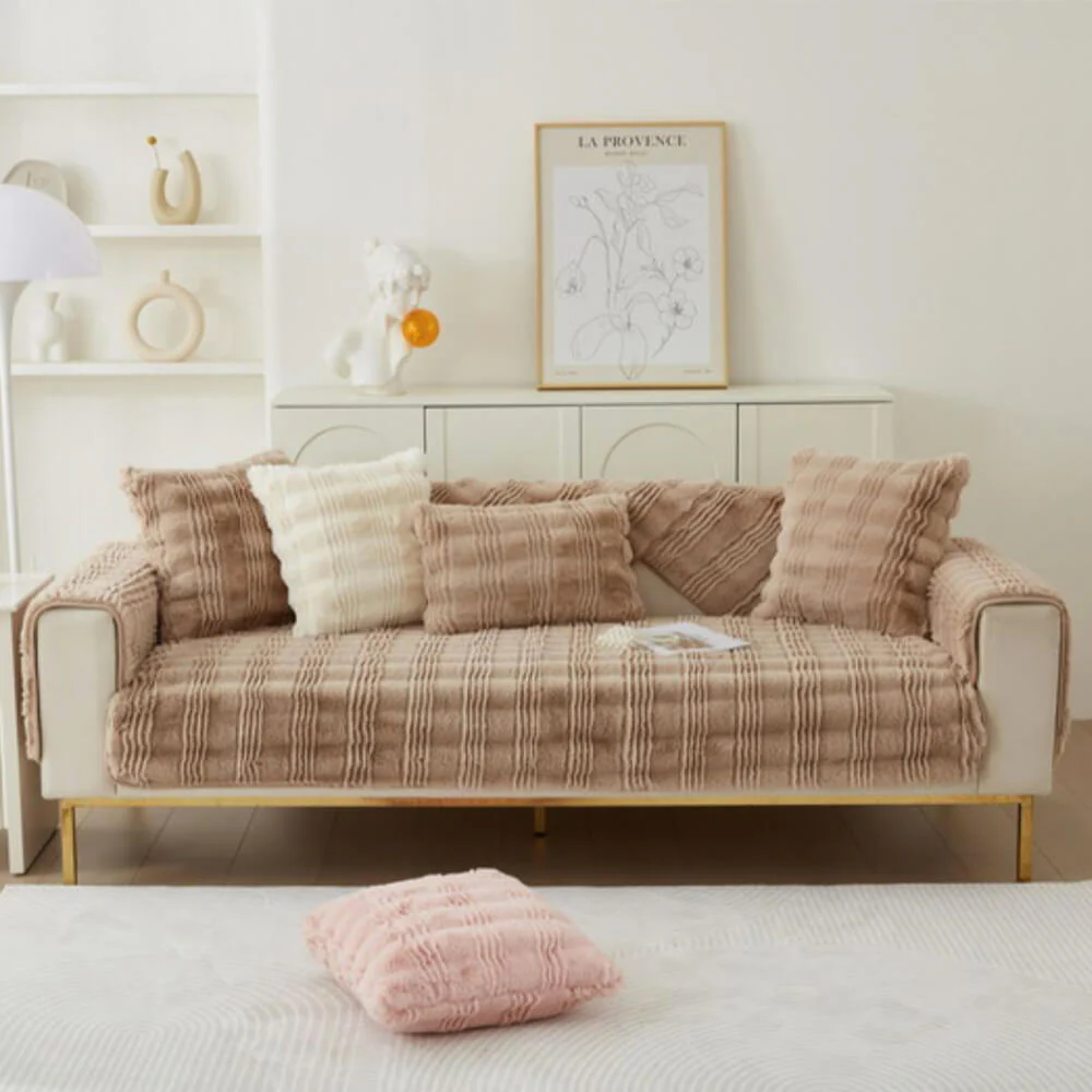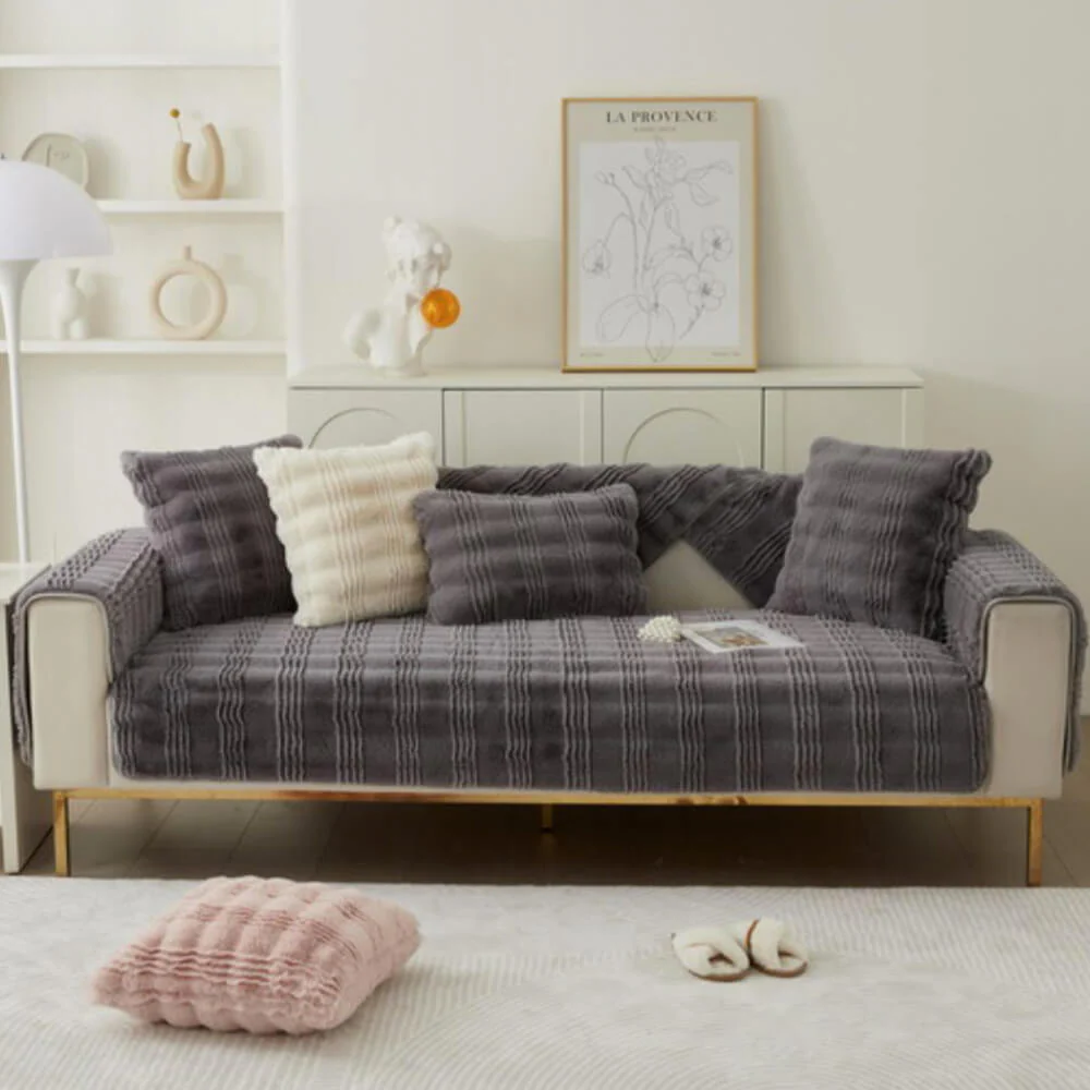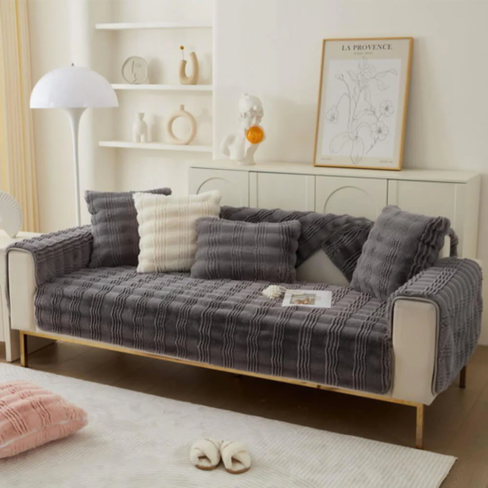 Modern Comfortable Faux Rabbit Fur Anti-Slip Couch Cover