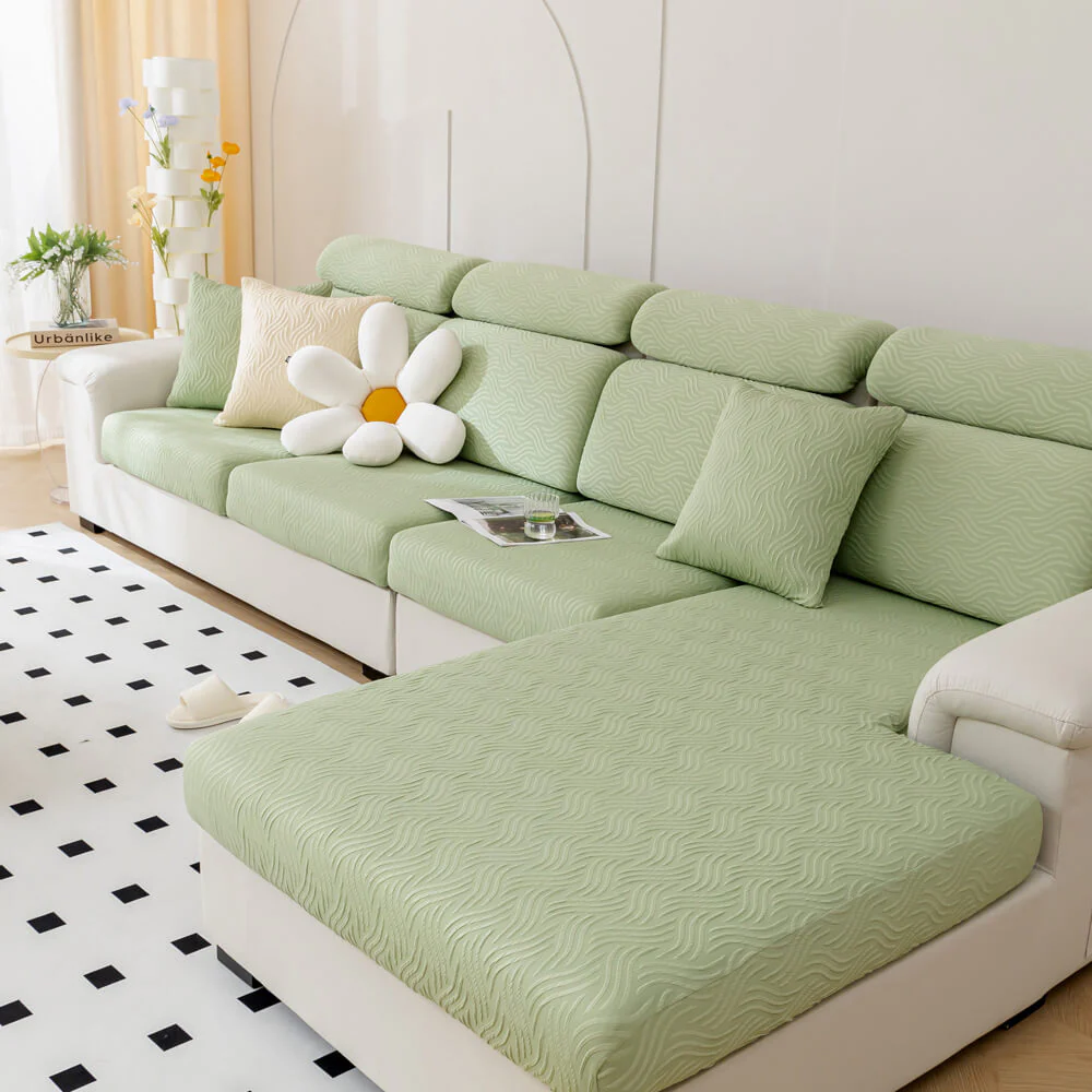 Modern Leaf Jacquard Water-Repellent Anti-Scratch Stretch Full Wrap Couch Cover