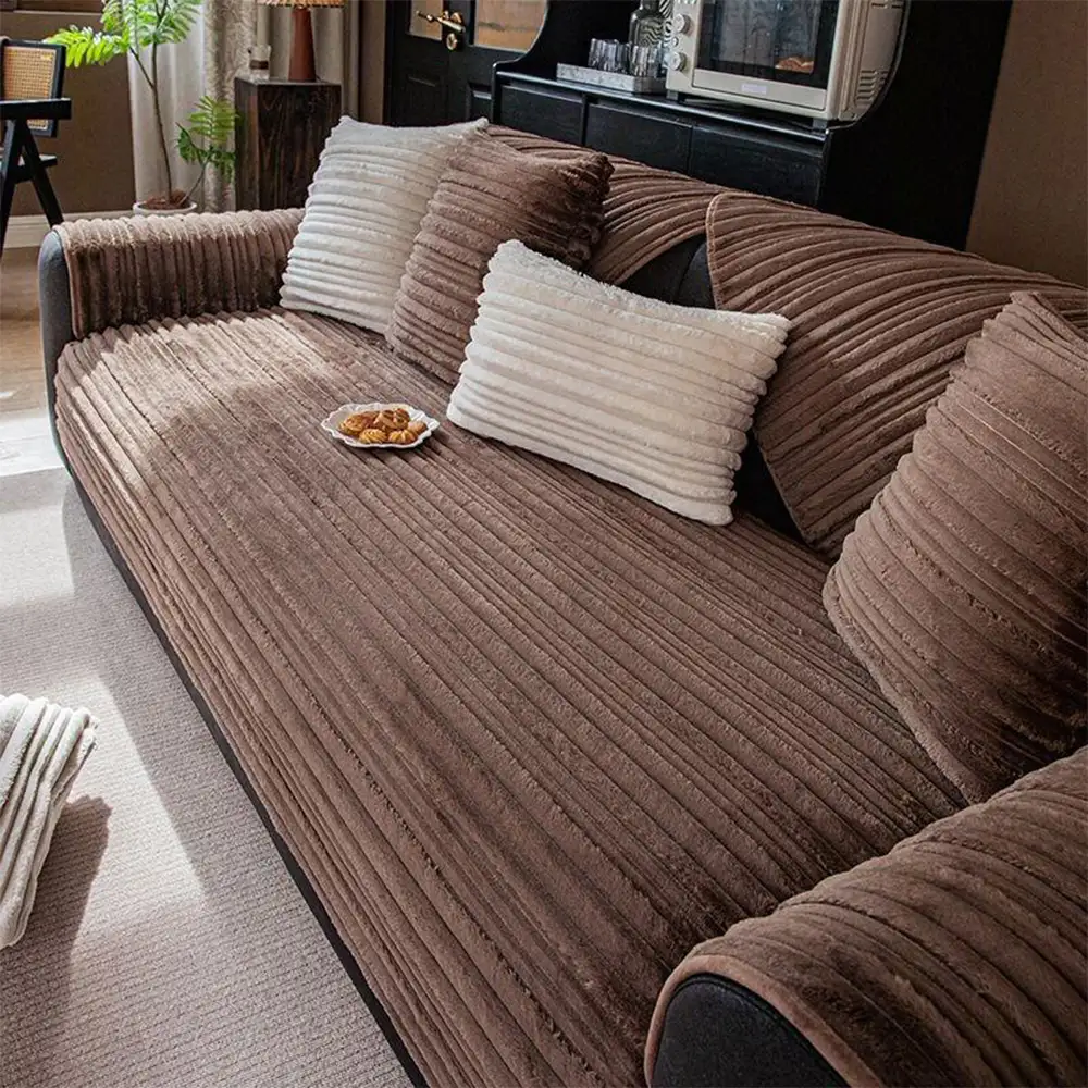 One-Piece Cozy Flannel Sofa Protection Non-Slip Couch Cover