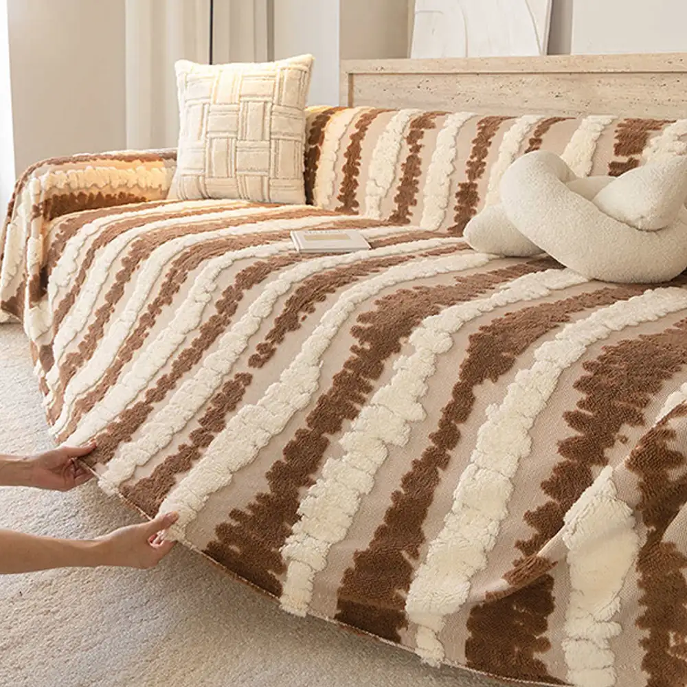 Modern Asymmetrical Stripes Soft Plush Non-Slip Couch Cover