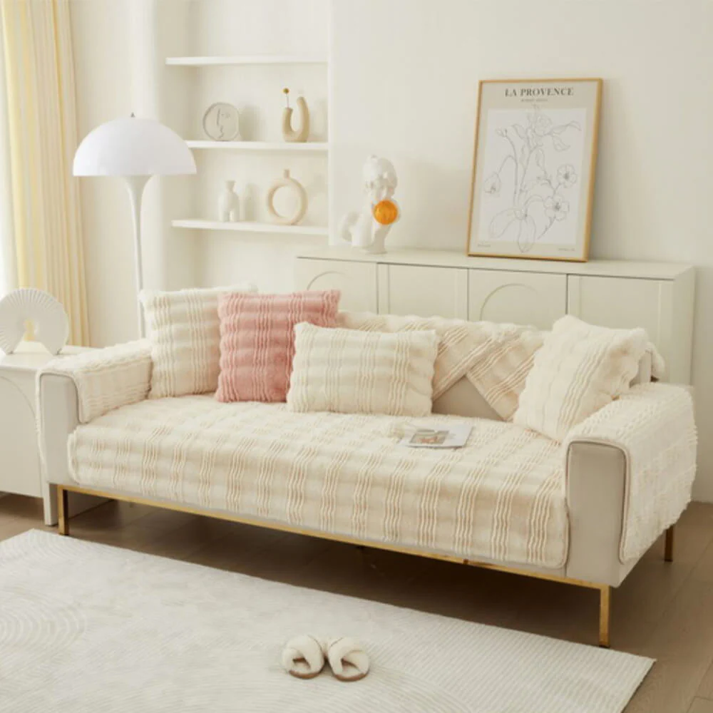 Plush Cream Comfort Furniture Protective Mat Couch Cover