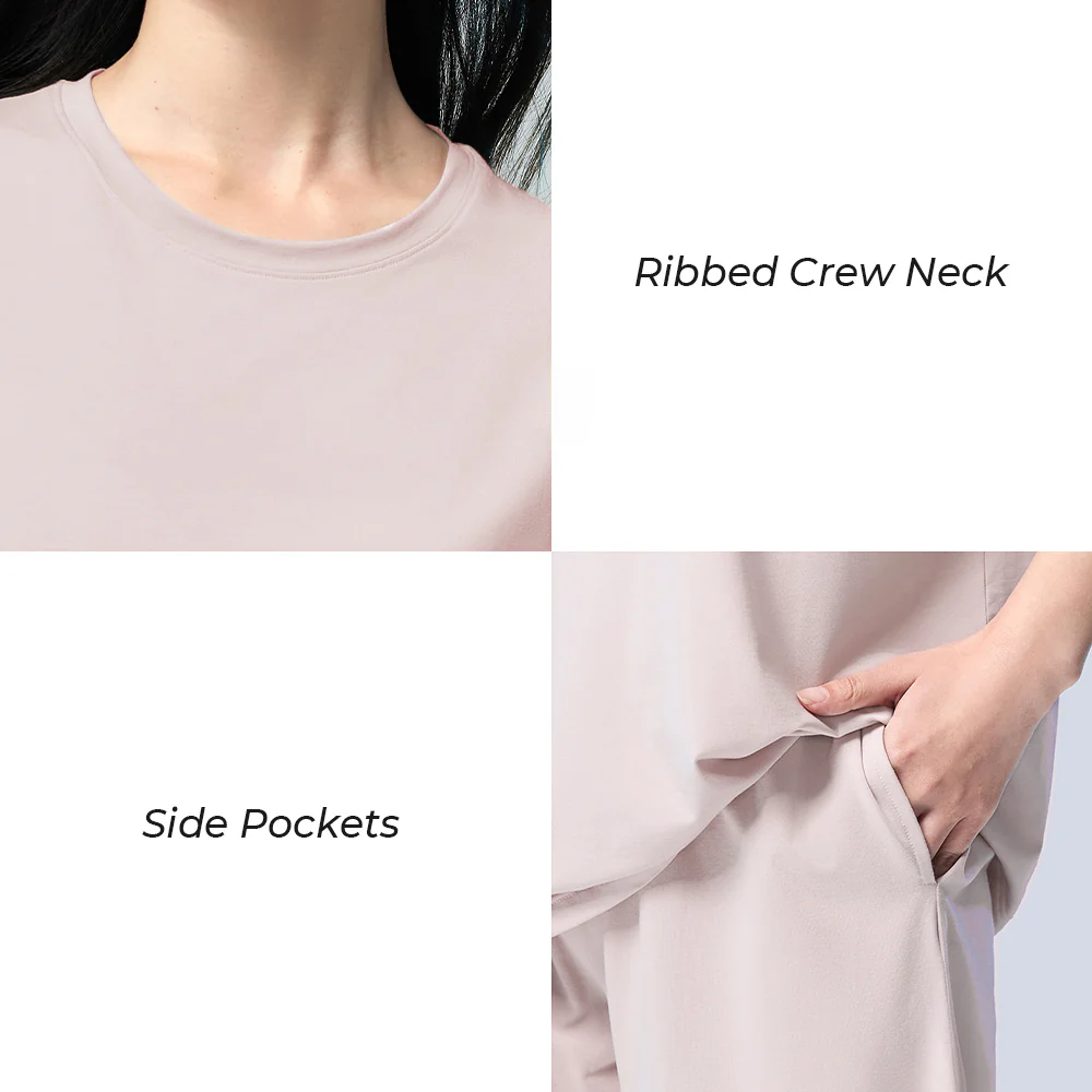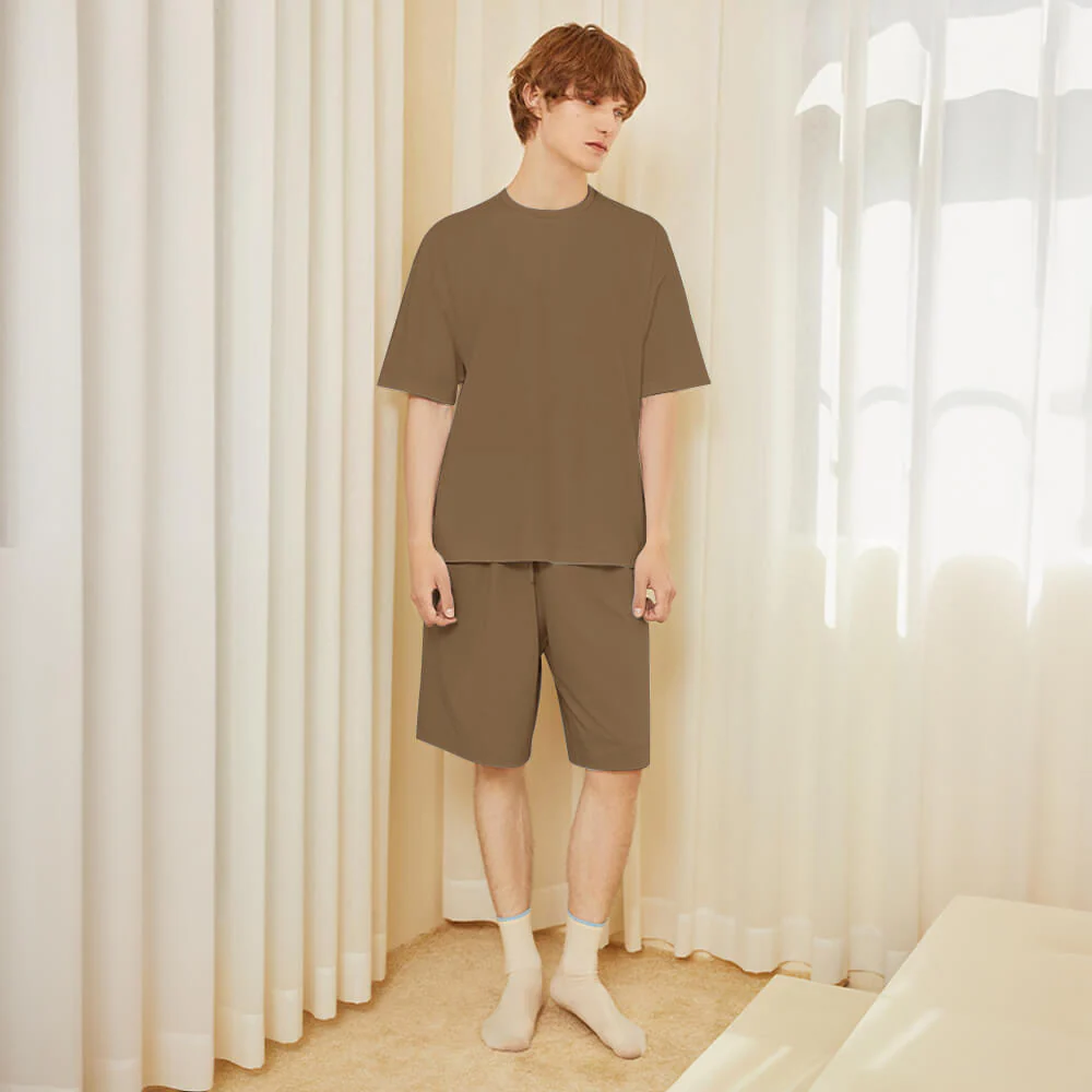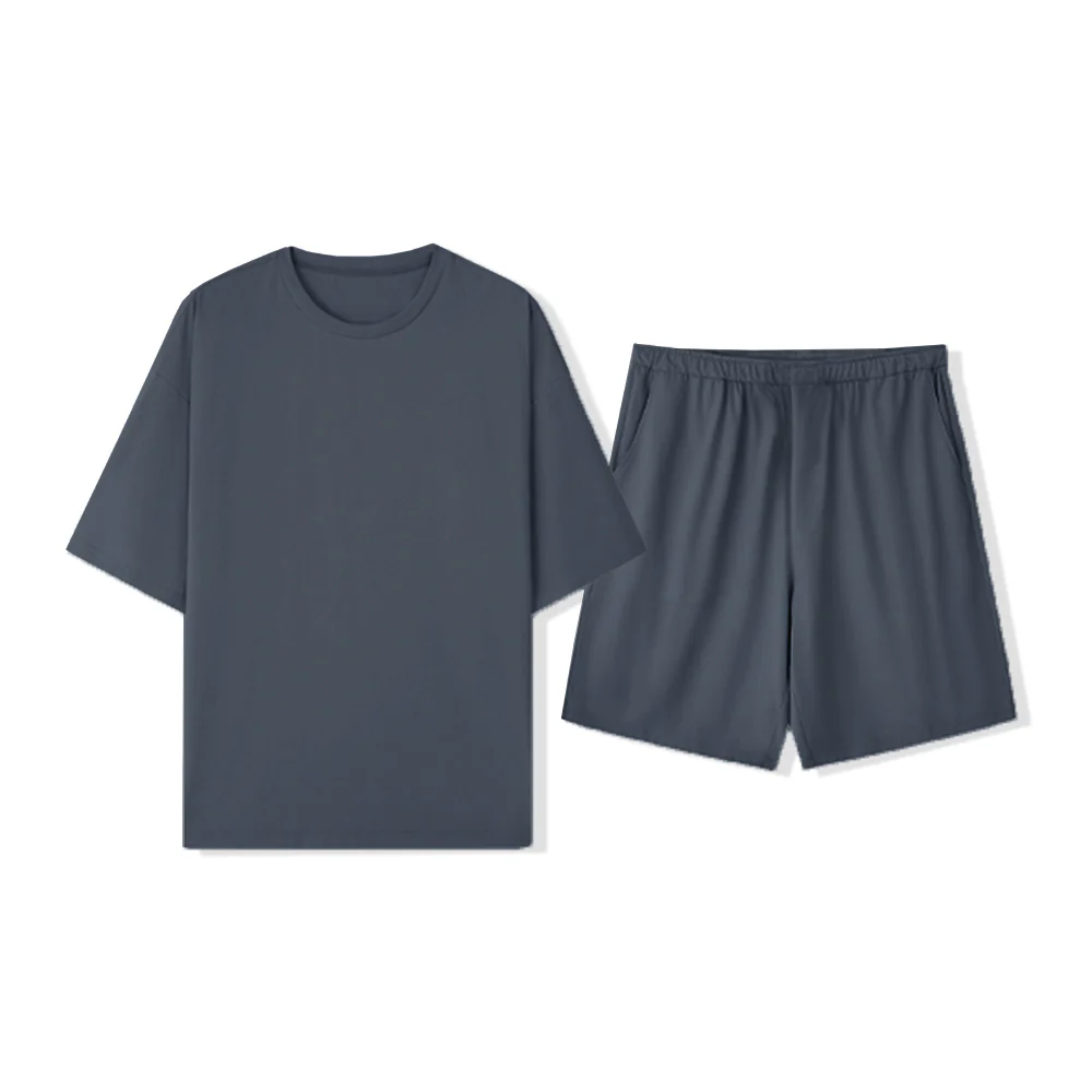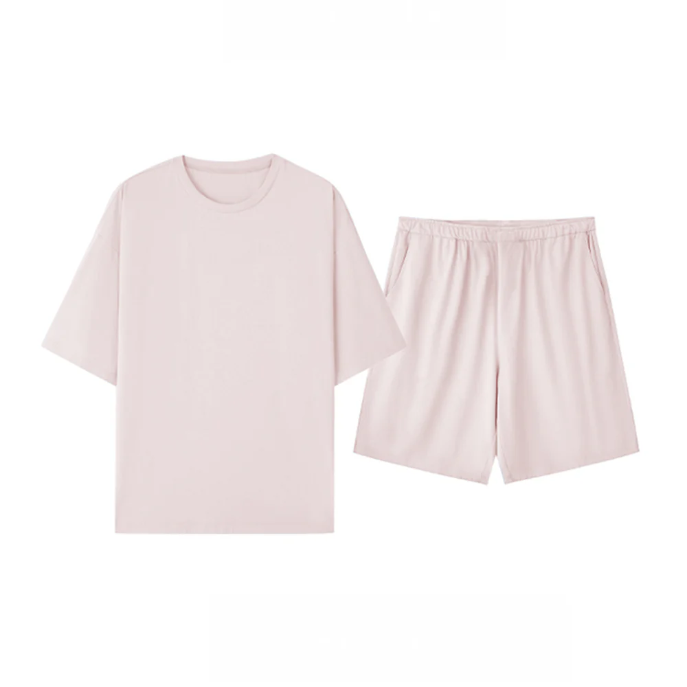 Eco-friendly Pet Hair Resistant Pure Color Crew Neck Short Sleeve Couples Pajama Set