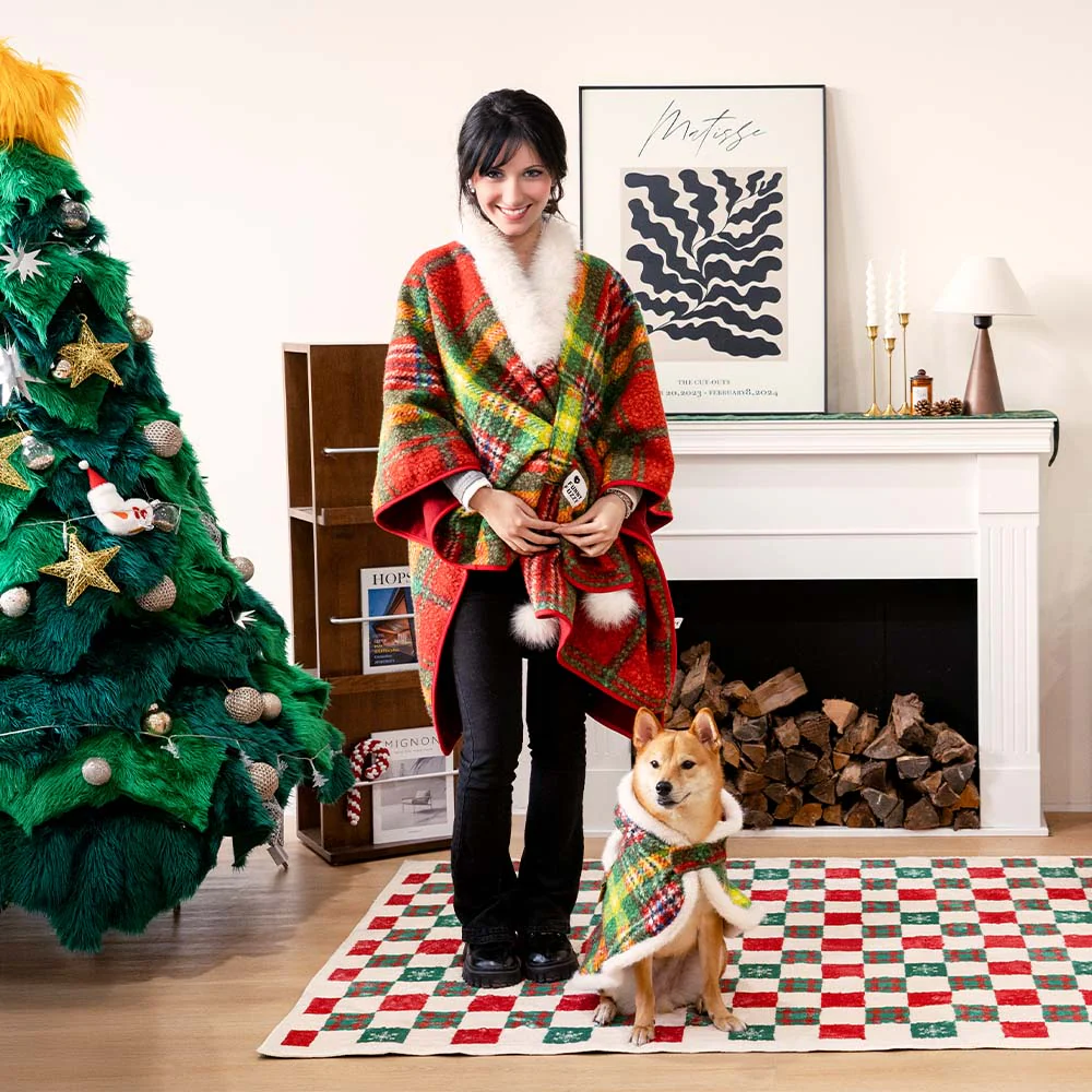 Classic Plaid Warmth Human & Dog Poncho - Festive Companions