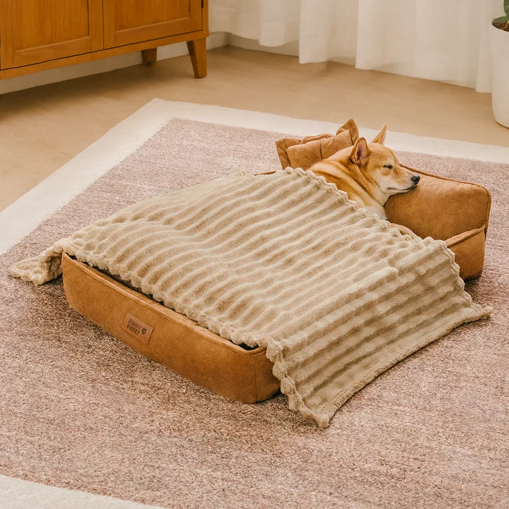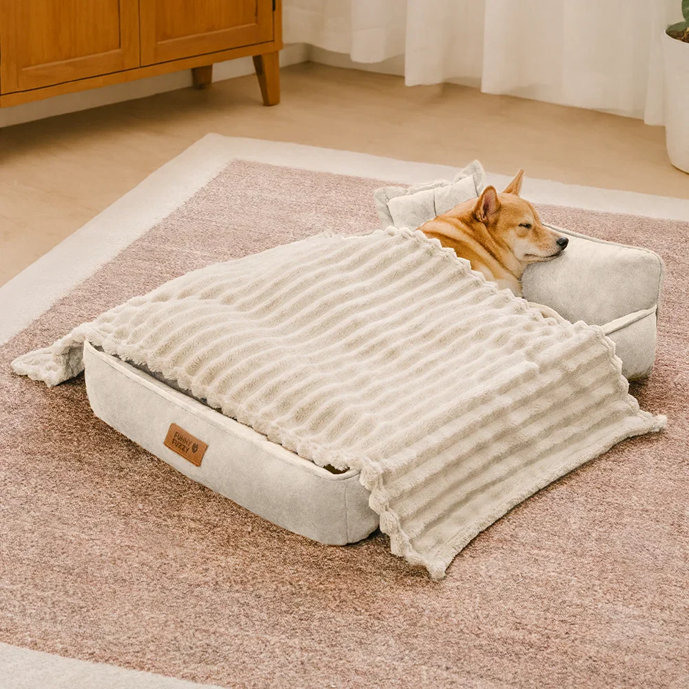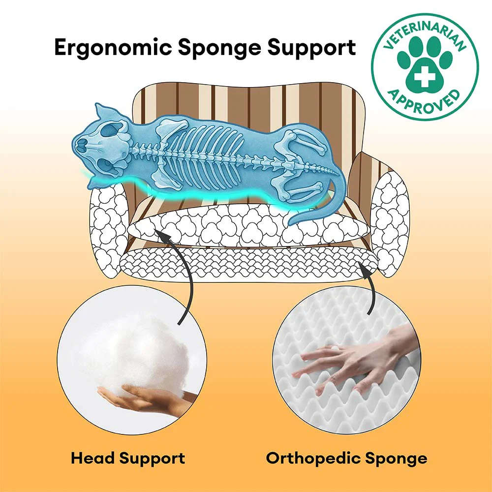 Plush Warm Stripe Orthopedic Dog & Cat Sofa Bed With Pillows- Grove Couch