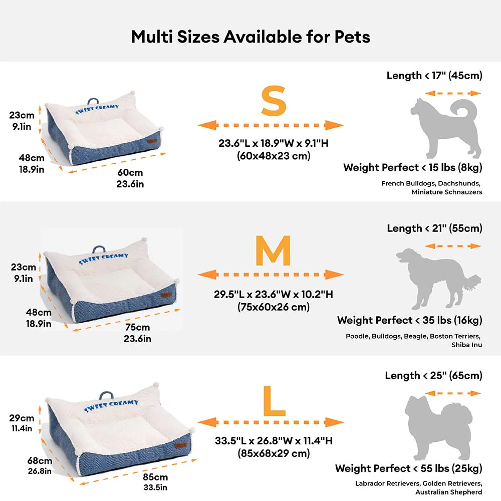 Plush Washable Bolster Dog Sofa Bed - Sweet Creamy