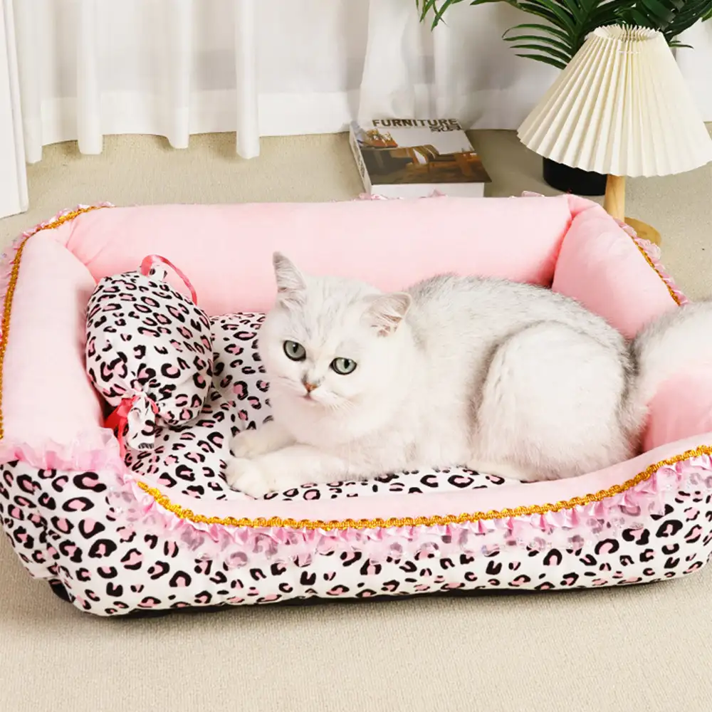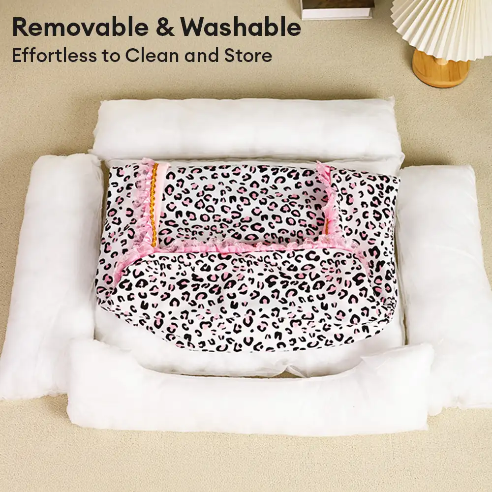 Pink Leopard Print Removable And Washable All-Season Princess Pet Bed