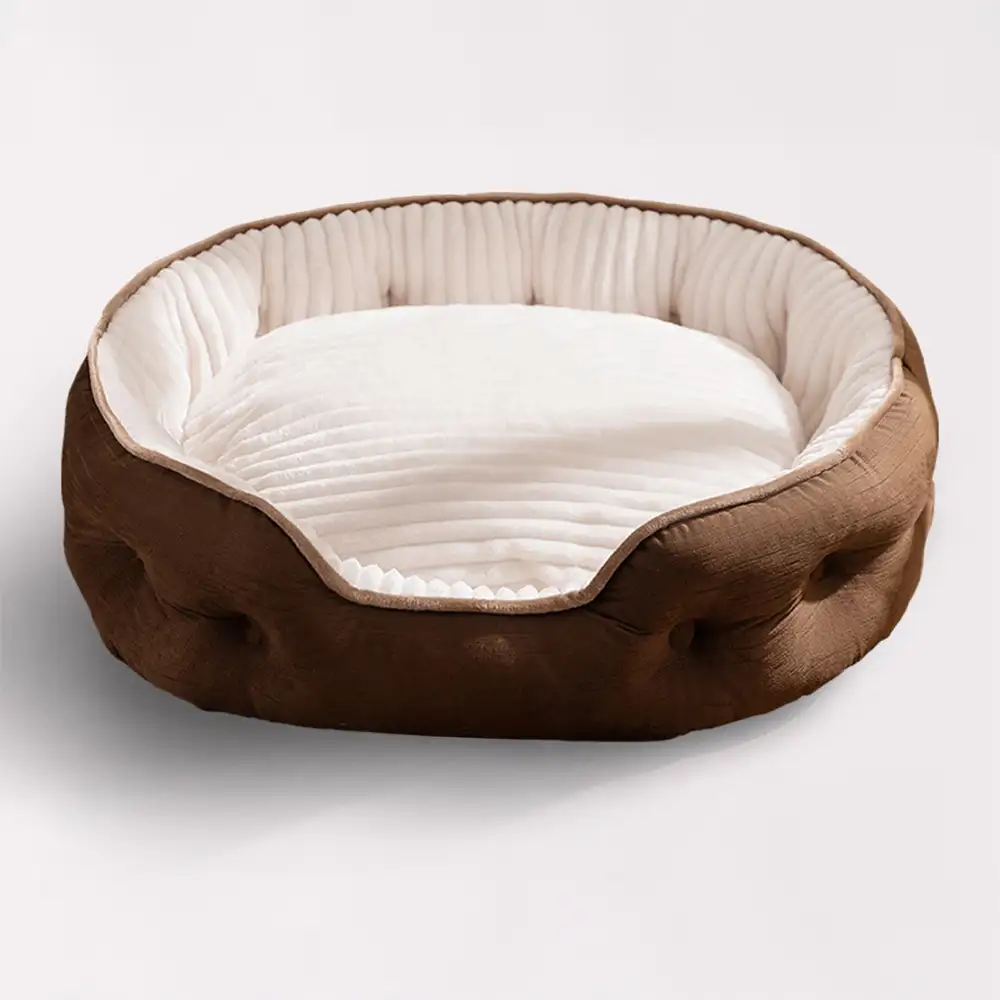 Plush Warmth Stripe Foldable Washable Dog & Cat Sofa Bed - MochaSnug