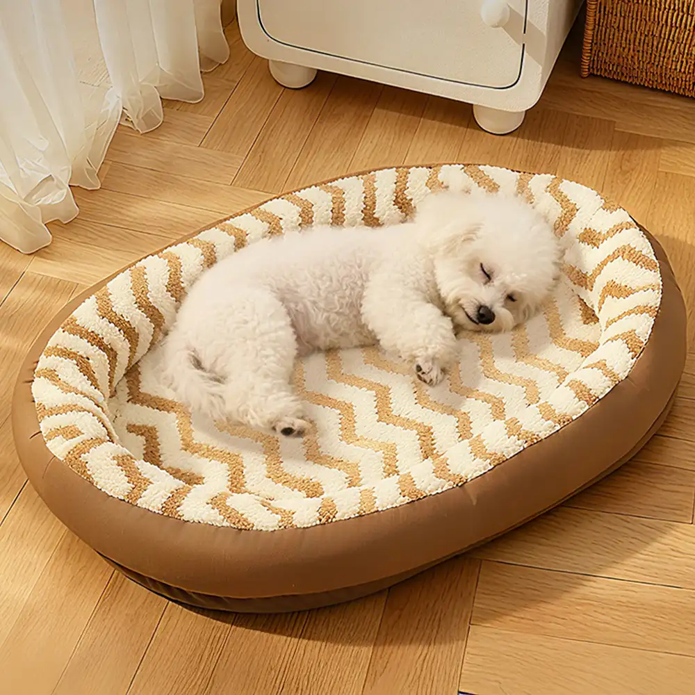 Geometric Wave Pattern Faux Leather Warm Removable And Washable Dog Bed