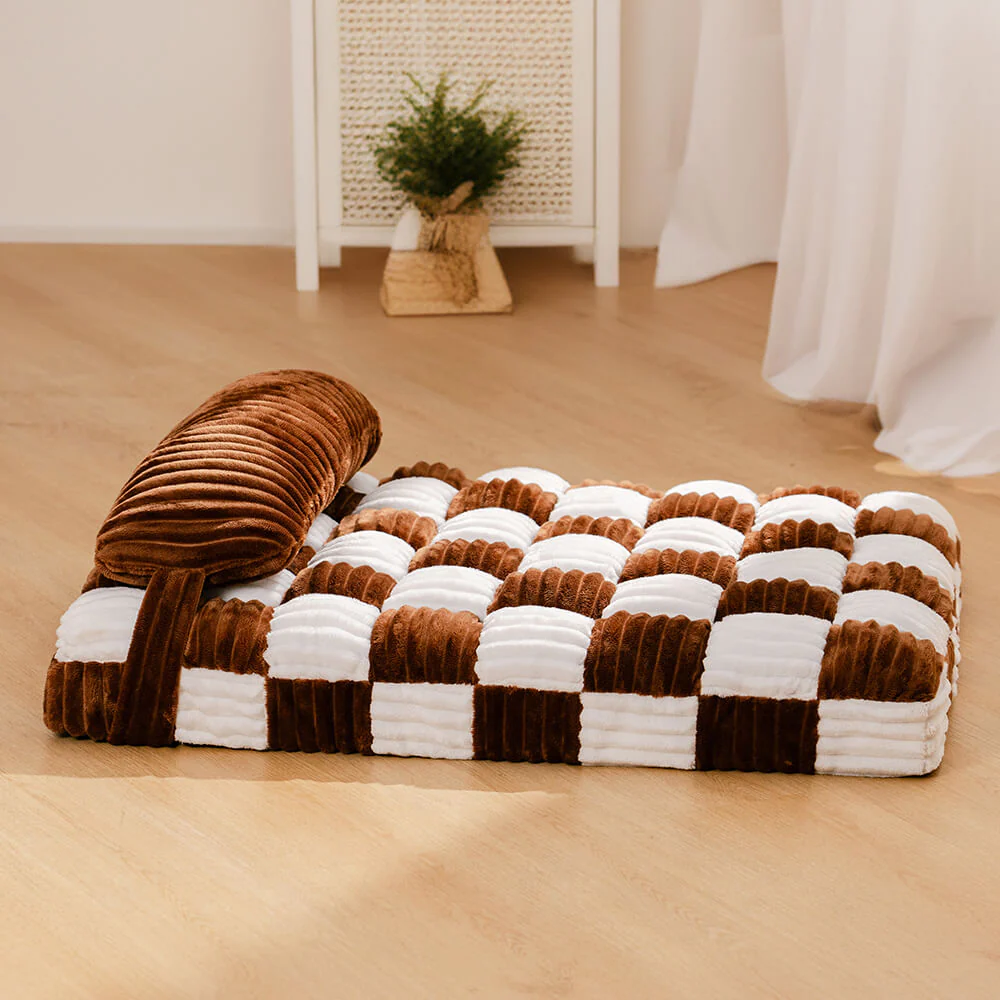 Handmade Plush Chessboard Orthopedic Support Dog Bed with Pillow